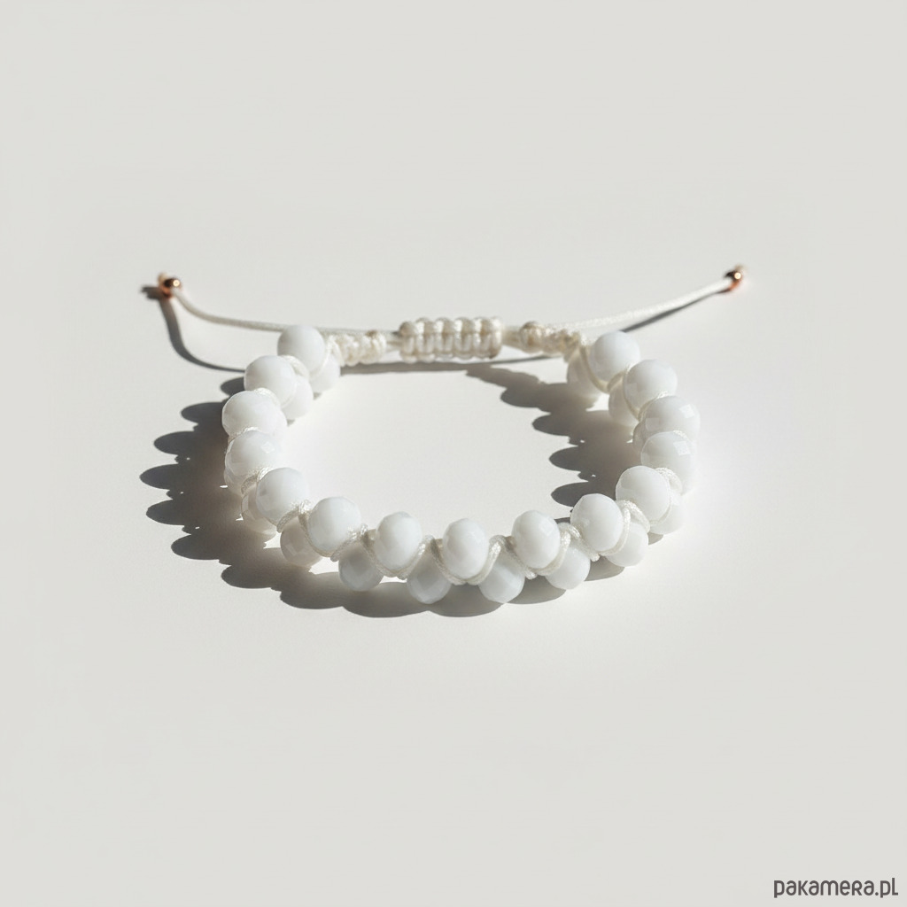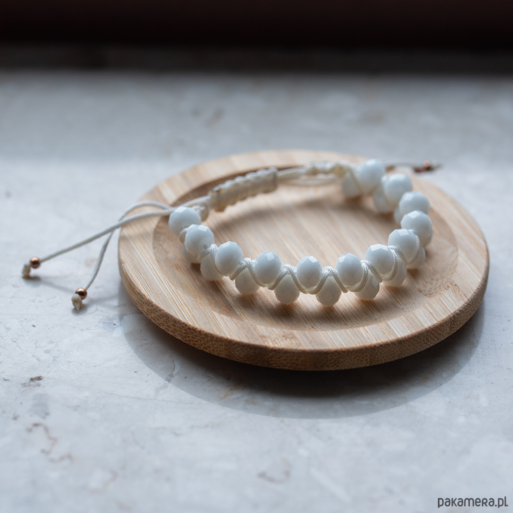 Biała makramowa bransoletka z koralikami