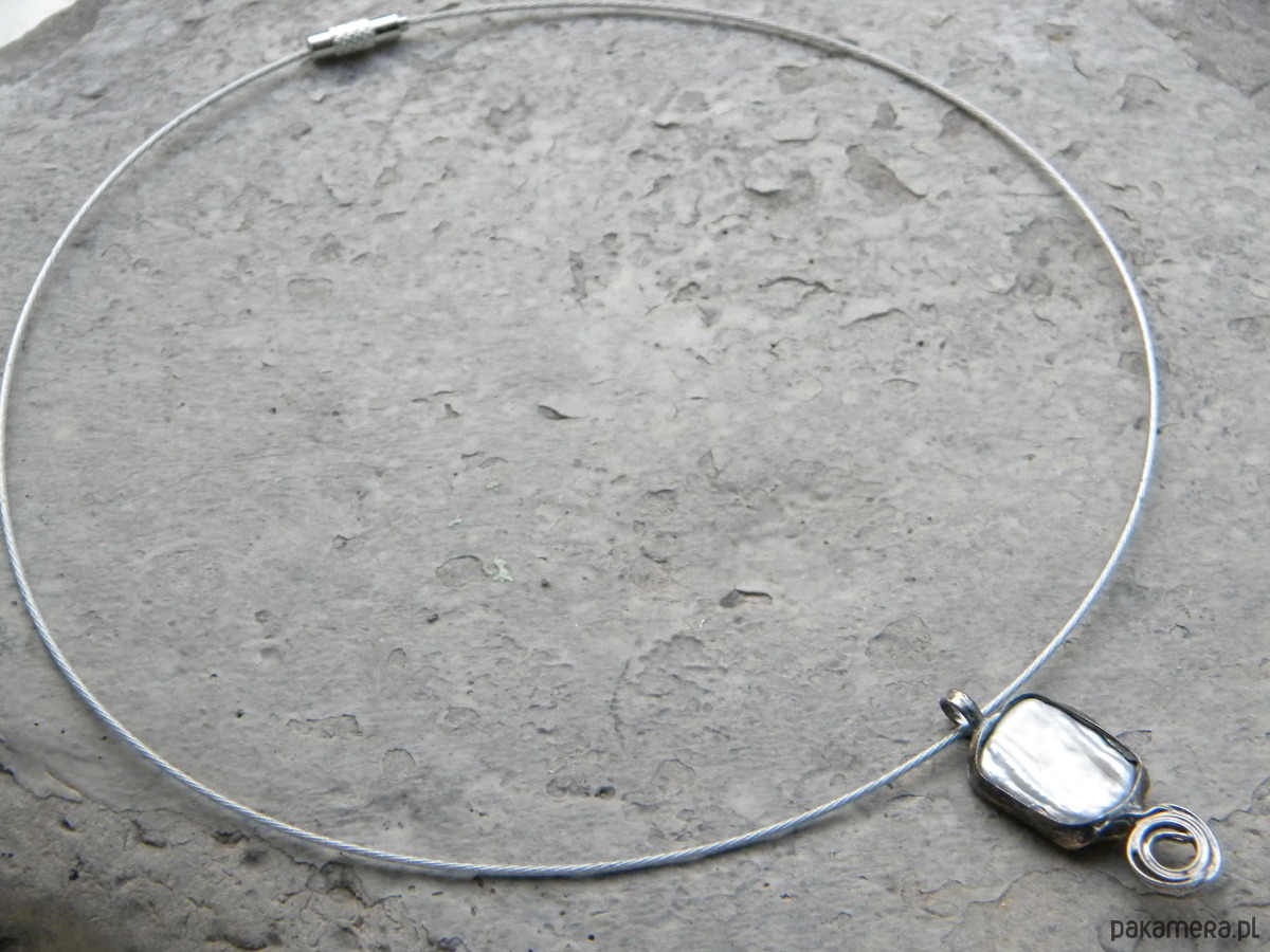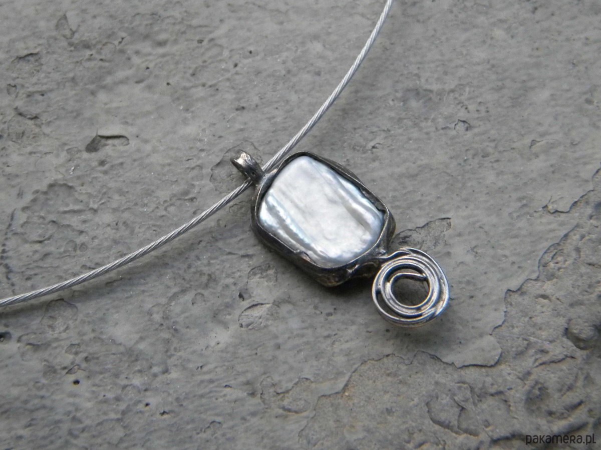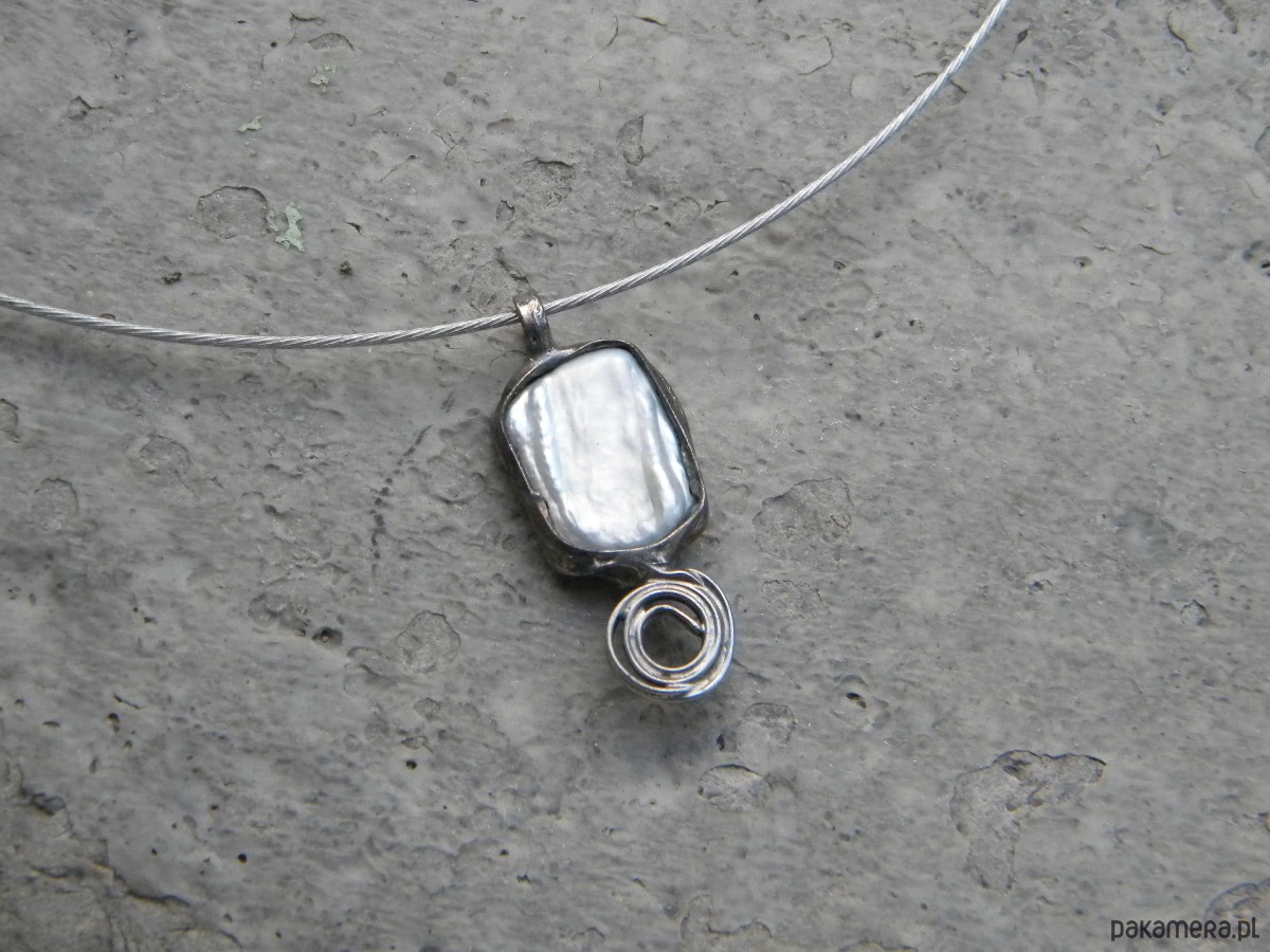 Biała perła z zawijaskiem - naszyjnik