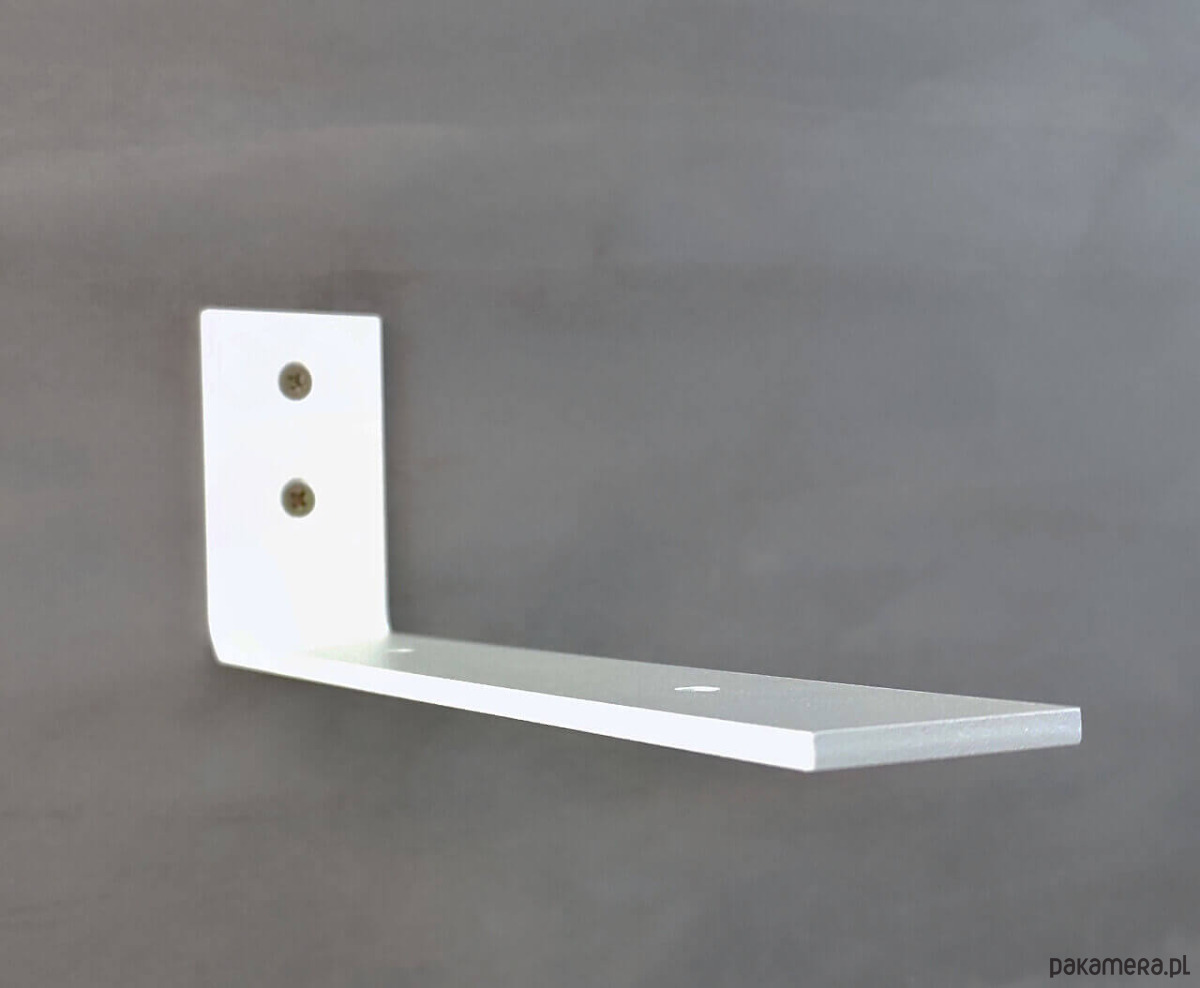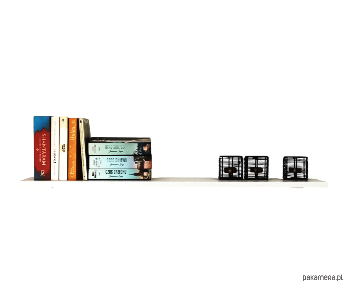 Biała Półka Wisząca na Białych Metalowych Wspornikach