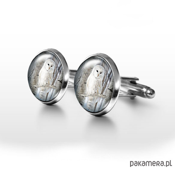 Biała sowa - spinki do mankietów
