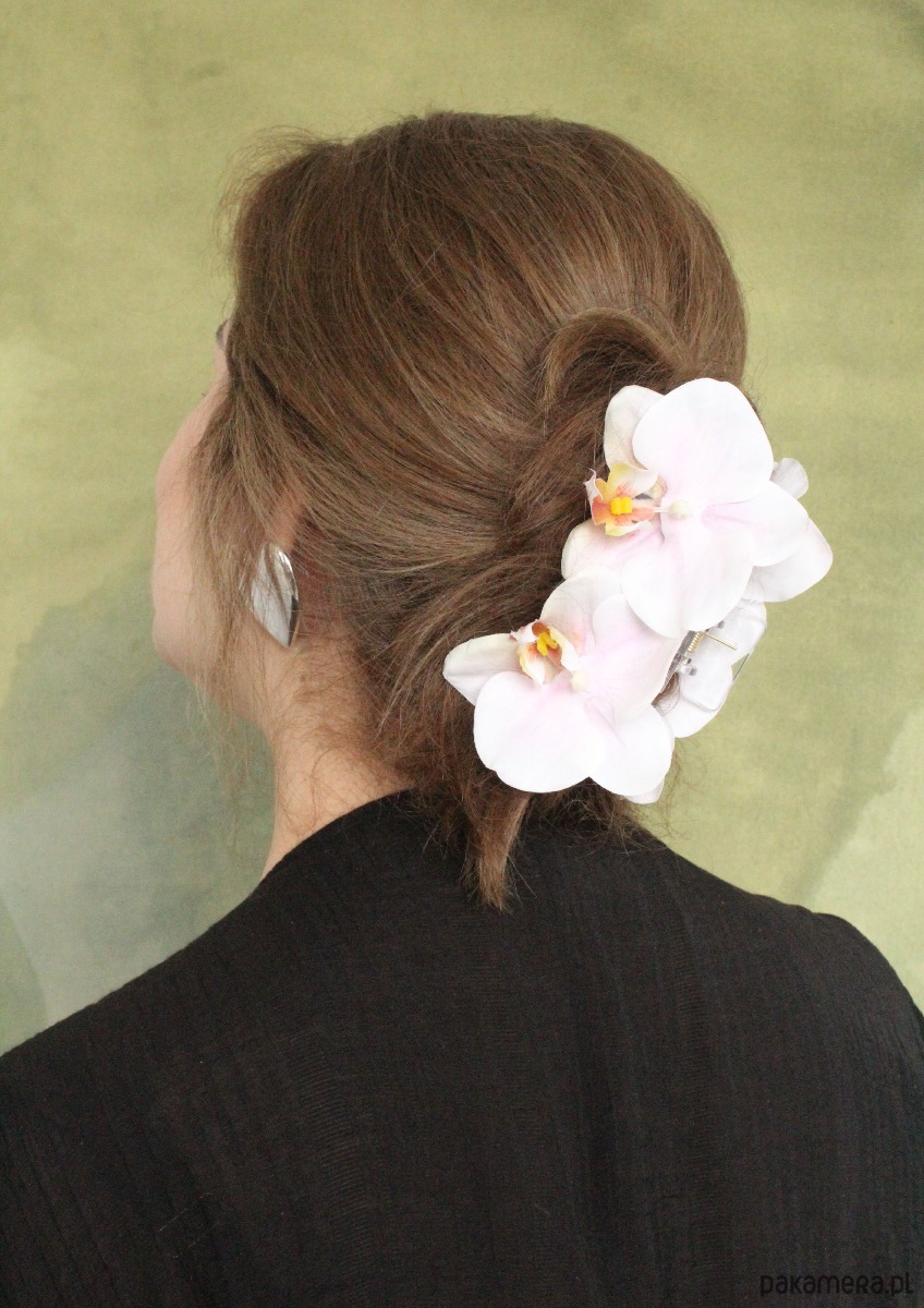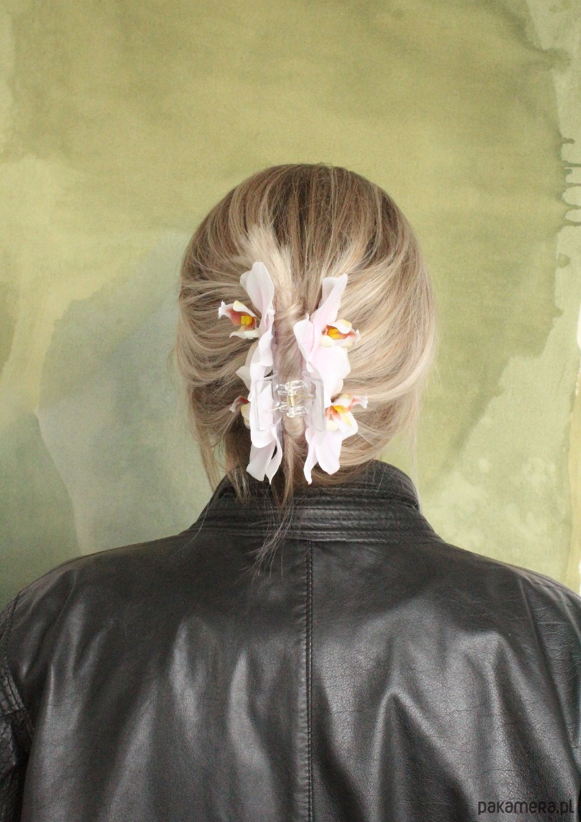 Ręcznie robiona spinka do włosów mleczna Orchidea
