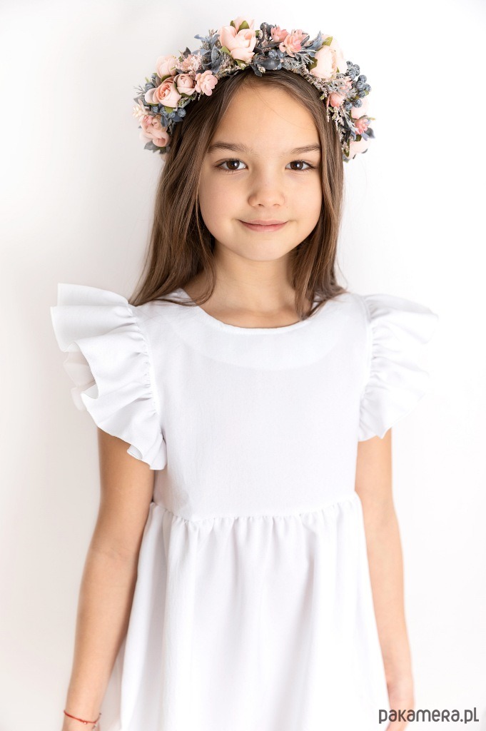 Biała sukienka LITTLE WINGS - 110; Wizytowe; Wiosna/LatoPiękna biała wizytowa sukienka dla dziewczynki LITTLE WINGS to będzie prawdziwy hit nadchodzącej wiosny. Klasyczna biała sukienka z rozkloszowanym dołem i subtelną falbanką przy rękawie. Z tyłu zapinana na suwak. Idealnie sprawdzi się podczas przyjęcia komunijnego.Wysoka jakośćUbrania dla dziewczynek w naszym sklepie internetowym wykonane są z najwyższej jakości materiałów. Wszystkie produkty są wygodne i uszyte z dbałością o każdy detal wykończenia.