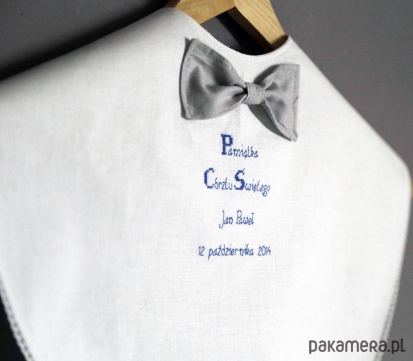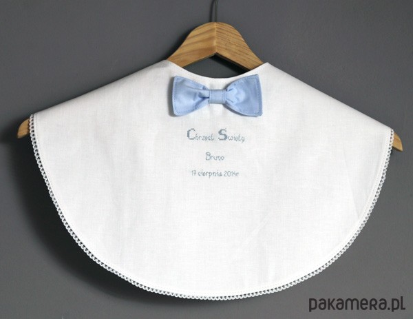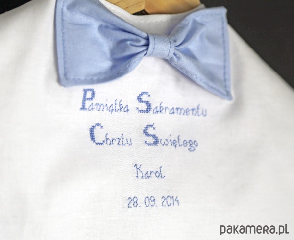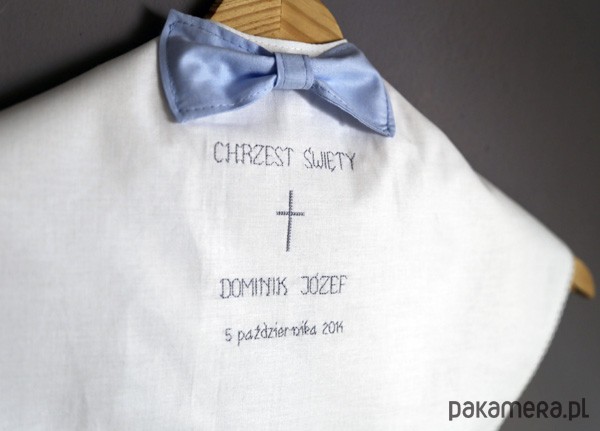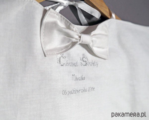 Kolor haftu dowolny. Szatka z muszką lub bez.