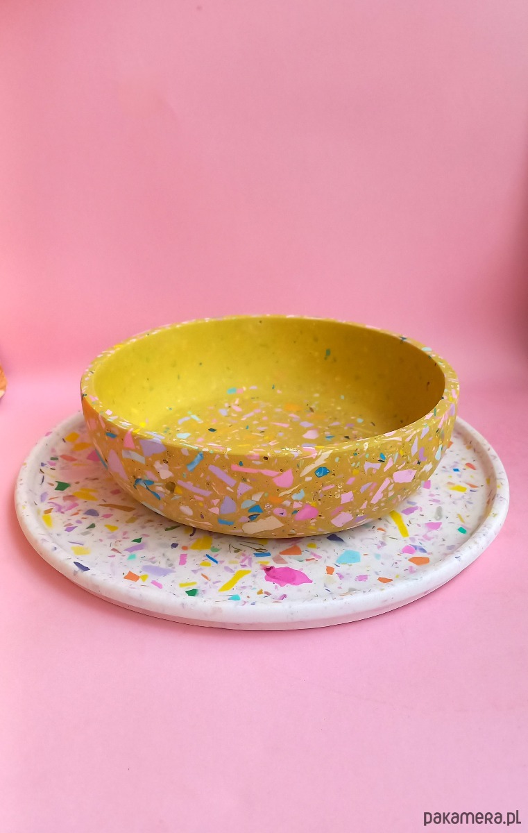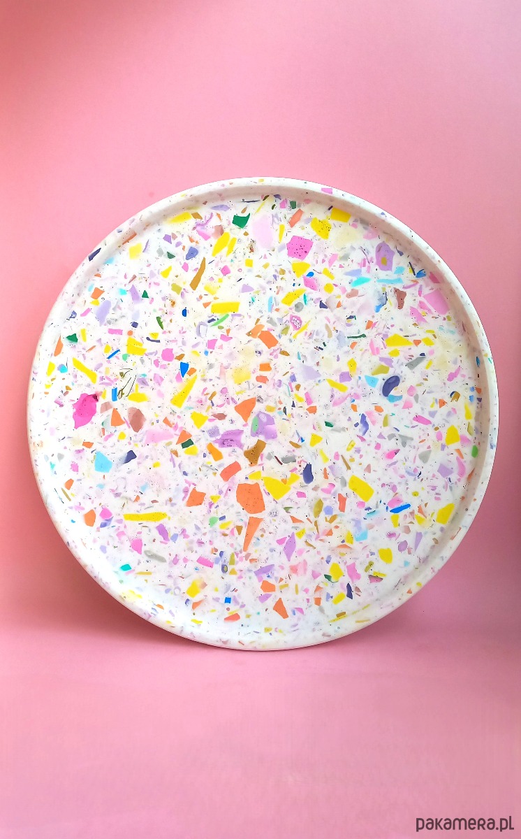 Taca dekoracyjna to przepiękny, designerski dodatek do salonu i kuchni. Wypełniona jest kolorowym lastryko w pastelowych i mocnych kolorach.
