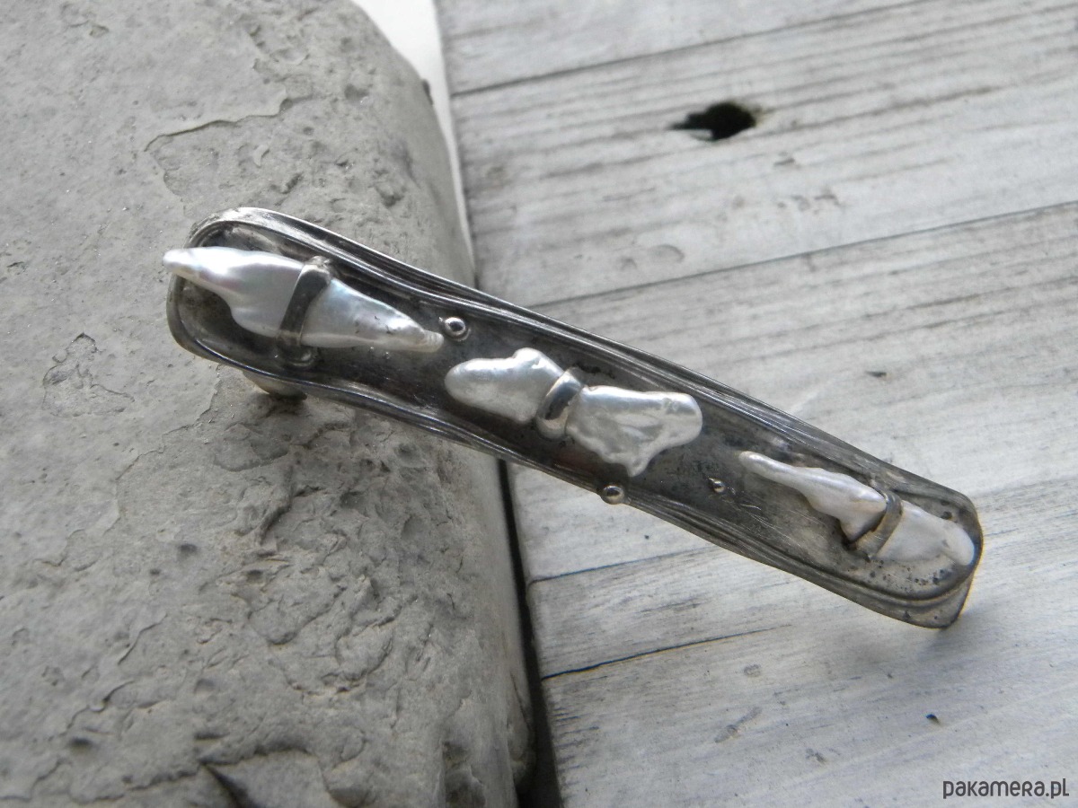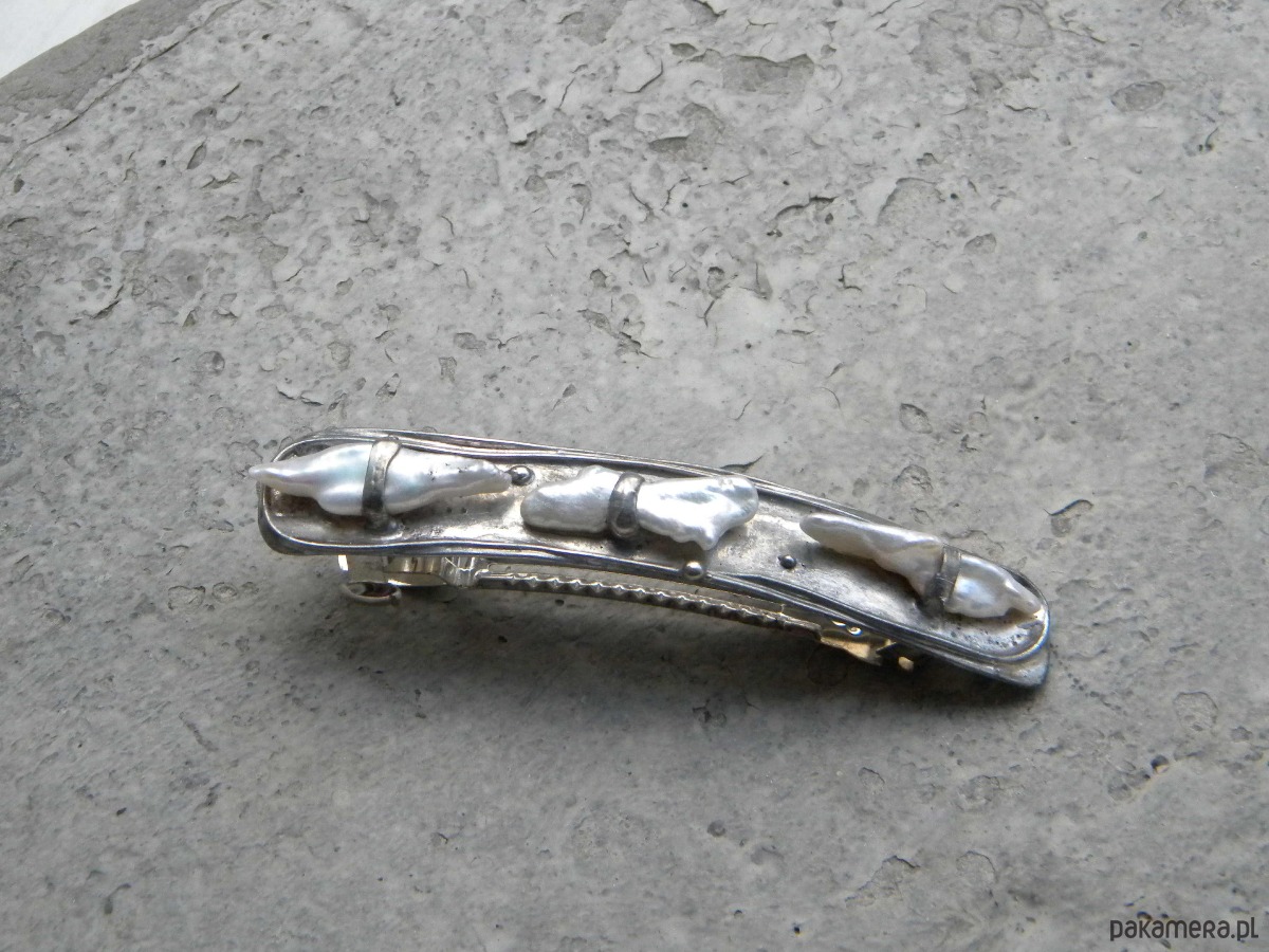 klamra do włosów z białych pereł w ocynowanej miedzi.