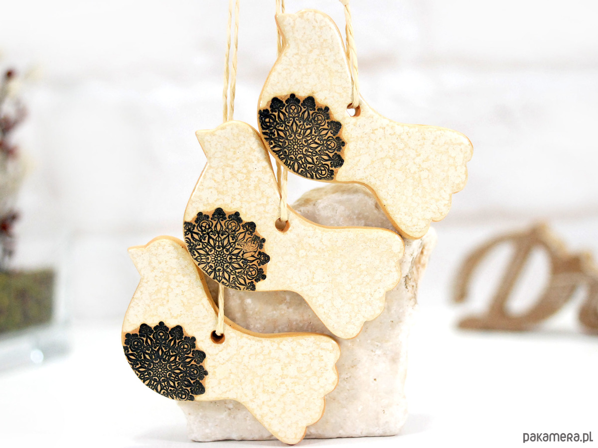 Zestaw trzech ptaszków ceramicznych, które wprowadzą do Twojego domu radosną atmosferę o każdej porze roku. Ceramiczne ozdoby dodadzą przytulności każdemu wnętrzu i idealnie sprawdzą się jako dekoracja gałązek bazi lub element wielkanocnego stroika. Świetnie sprawdzą się również jako drobny, ale wyjątkowy bo od serca, prezent dla Twoich bliskich.