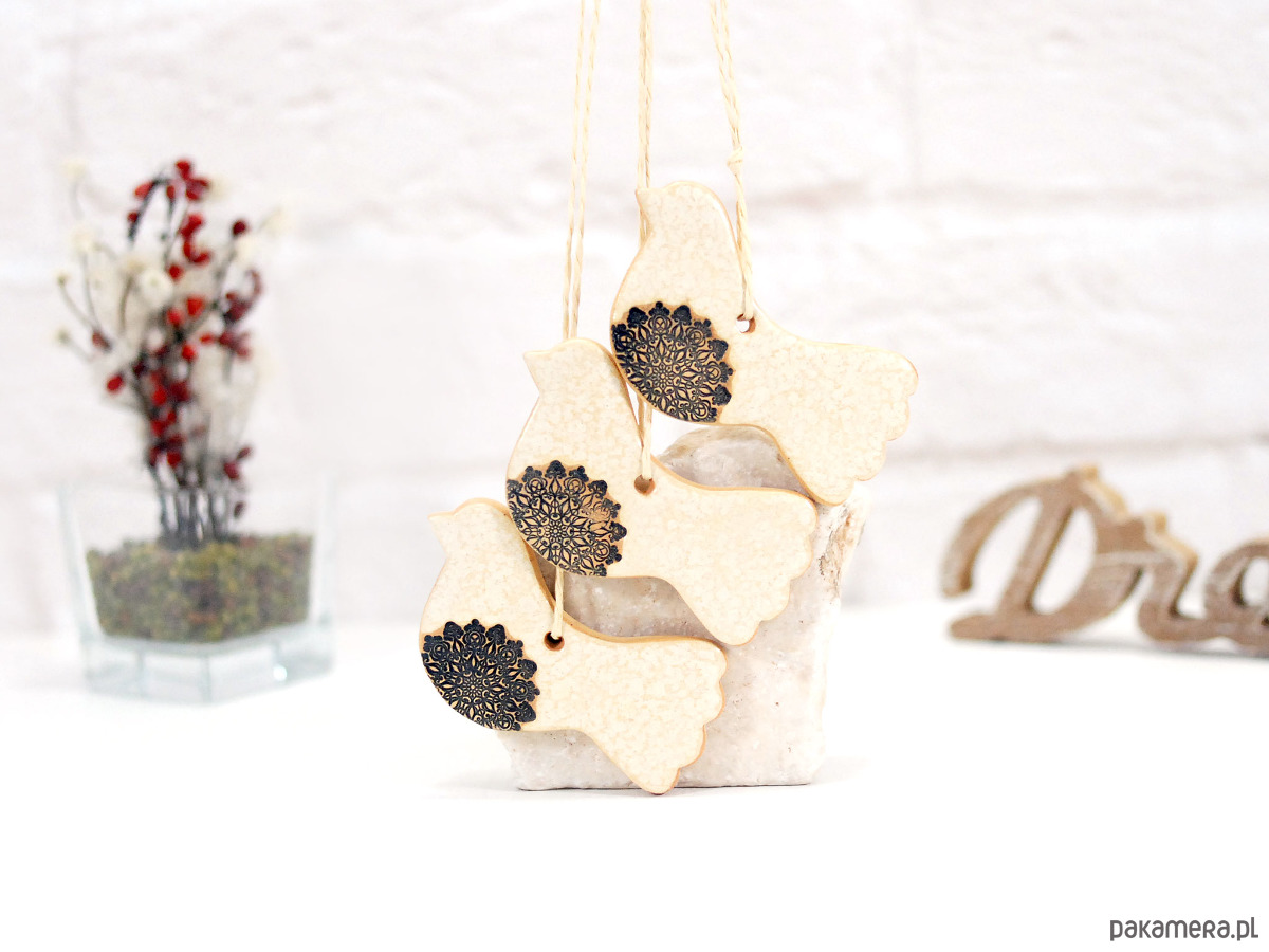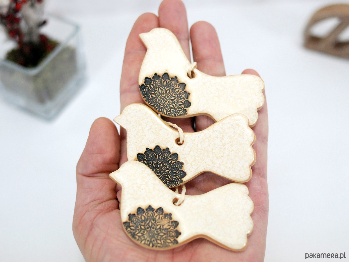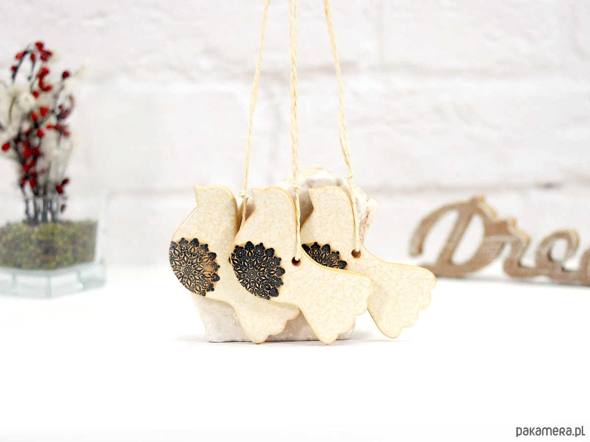 Białe ptaszki ceramiczne - ozdoba wielkanocna