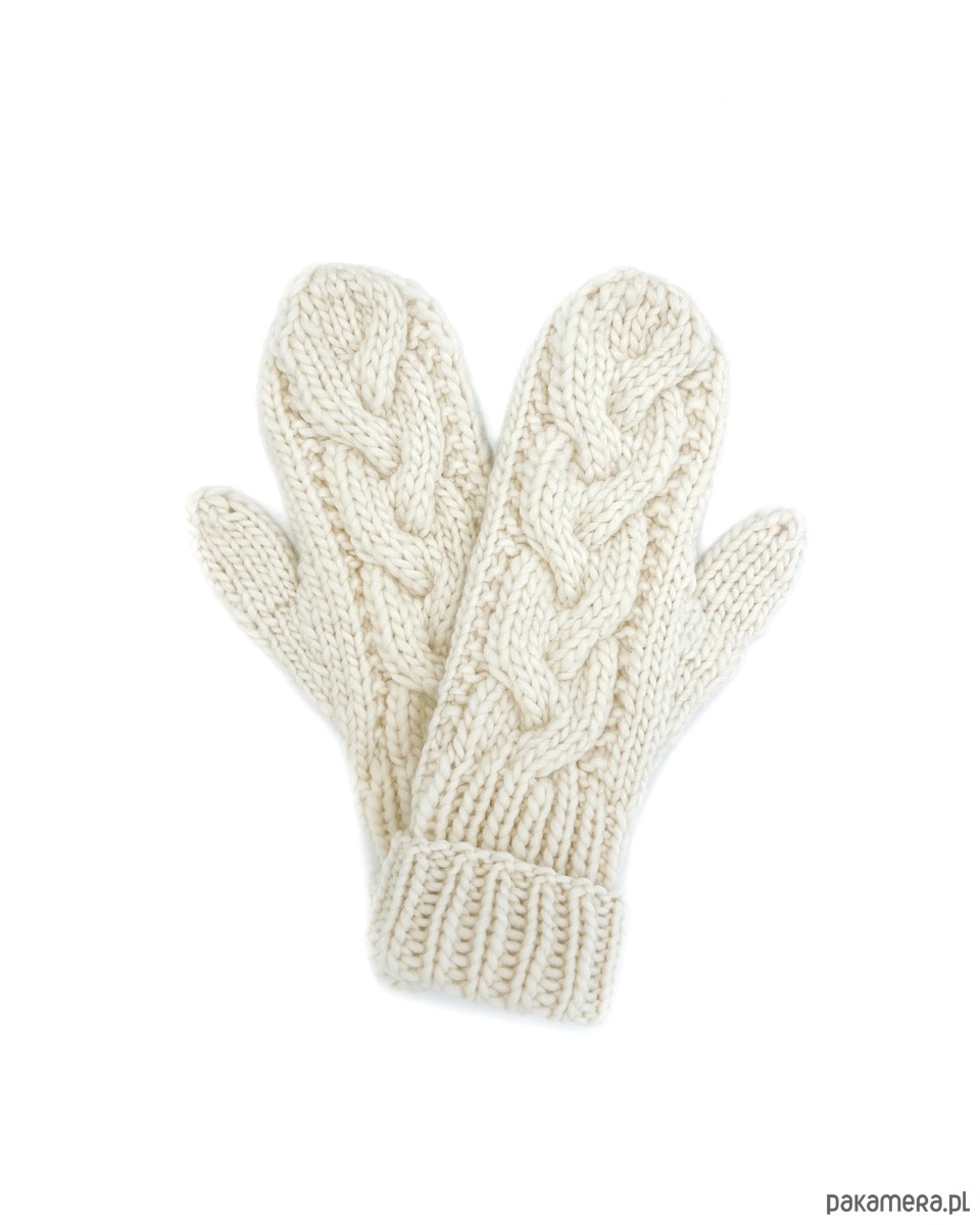 Białe rękawiczki wełniane z jednym palcem w warkocze