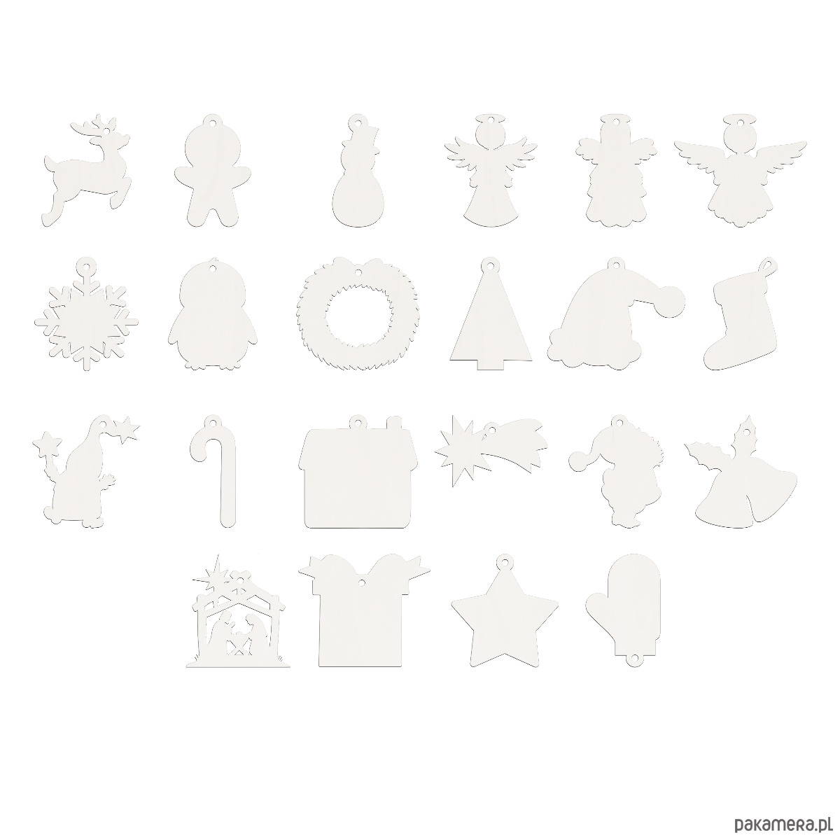 BIAŁE Scrapki Świąteczne Zawieszki Bombki Kształty MIX 50 Dekoracje Święta