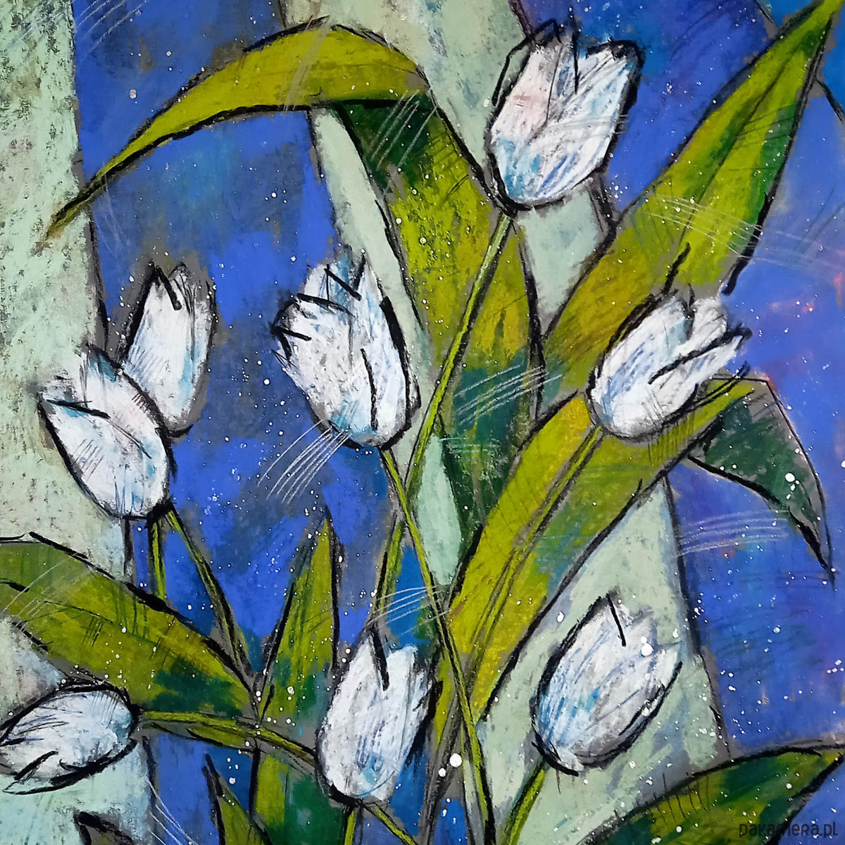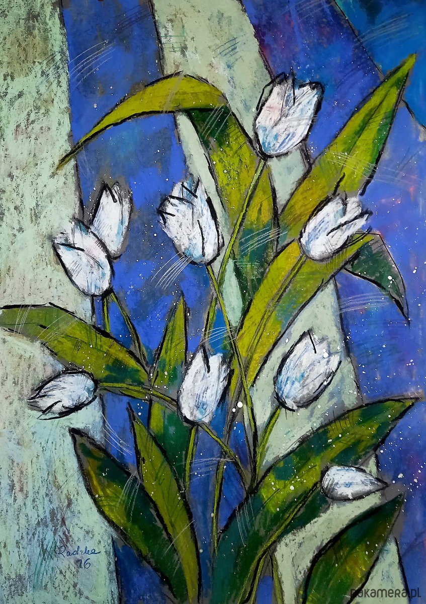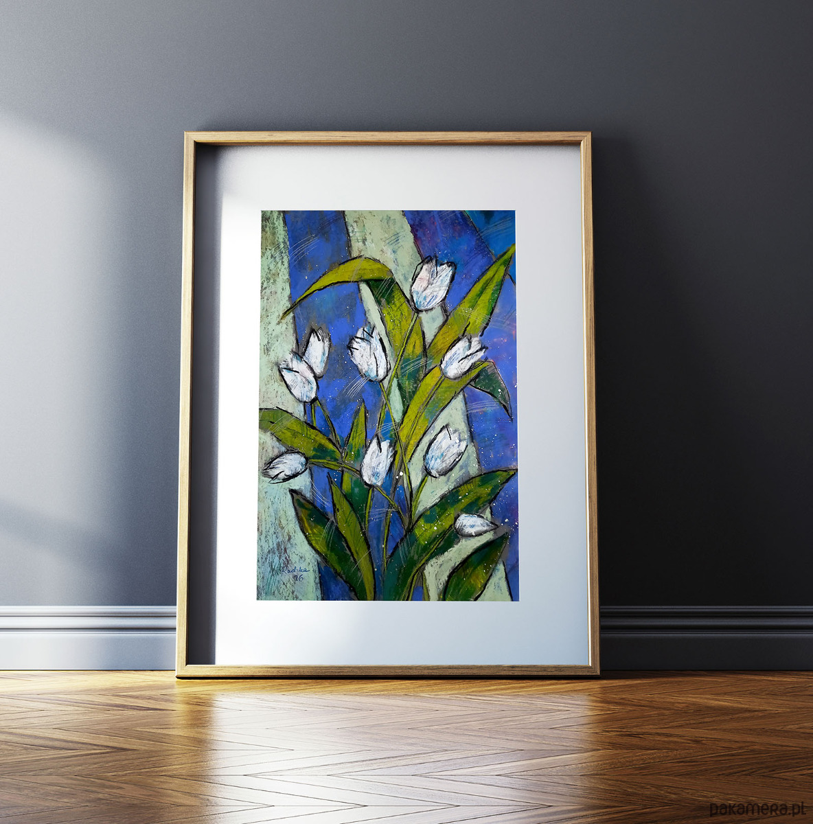 Rysunek wykonany pastelami suchymi, węglem, kredkami akwarelowymi i tuszem na brystolu 50x70 cm, zabezpieczony fiksatywą, bez ramy. Ciut srebrnej kredki. Na życzenie tworzę symulację kolorystyczną passe partout pasującego do rysunku. Kolory mogą nieznacznie odbiegać od oryginału w zależności od ustawień monitora. Pracę wysyłam w tubie przesyłką priorytetową lub inpostem.
