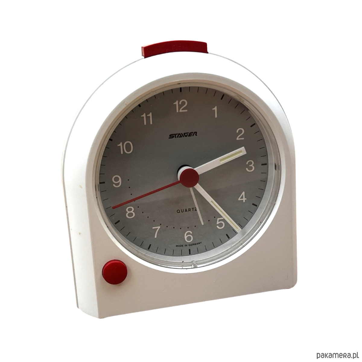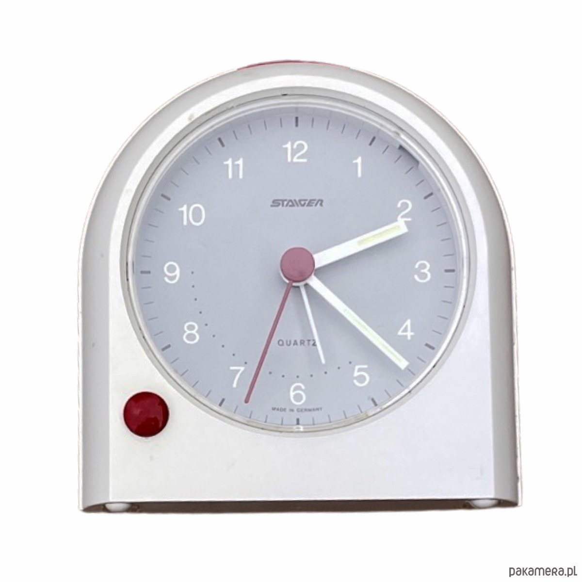 Biały budzik Staiger elektryczny, Niemcy, lata 80.