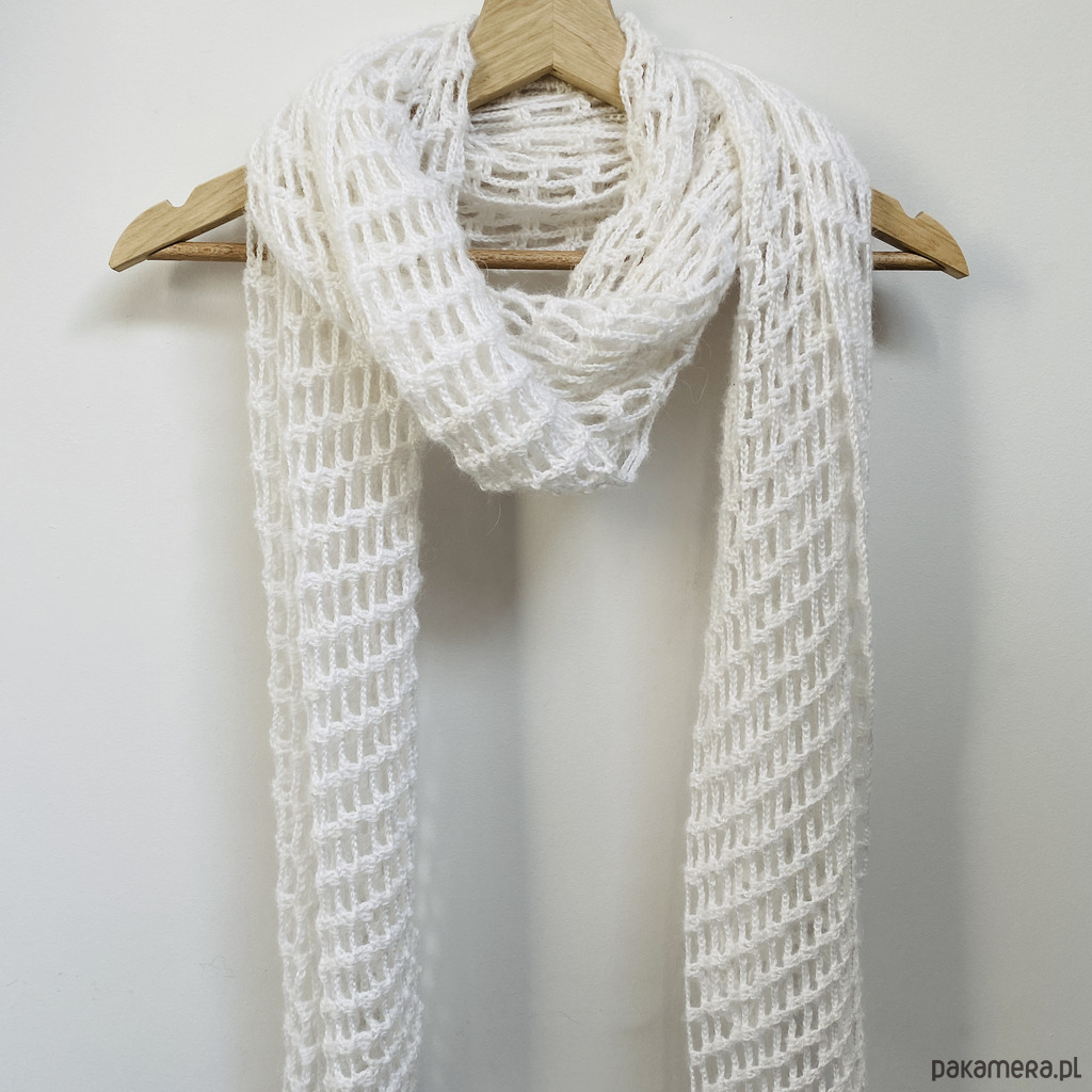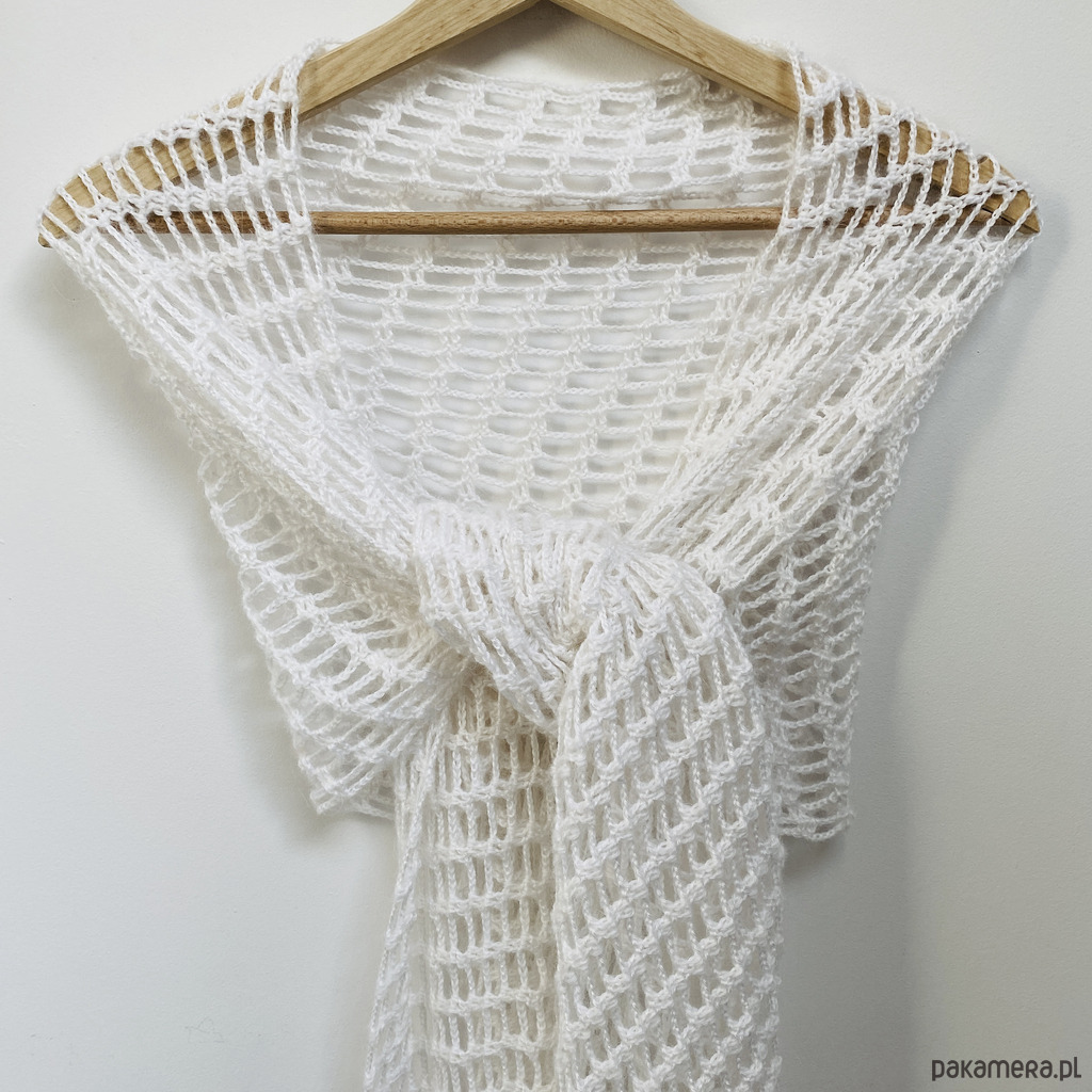Biały delikatny szal ślubny etola z wełną merino ręcznie wykonany