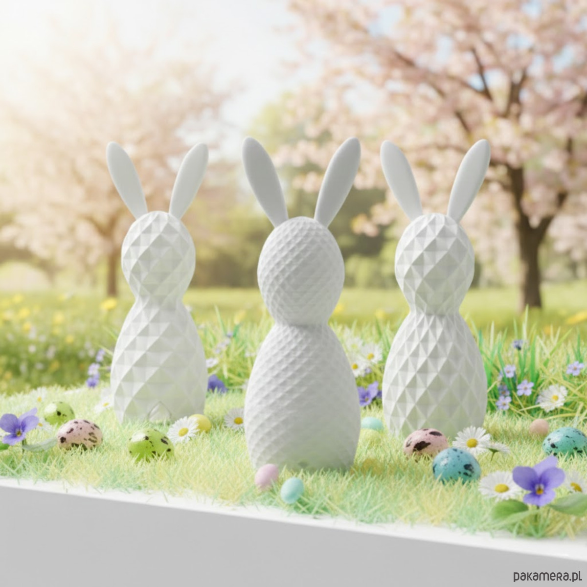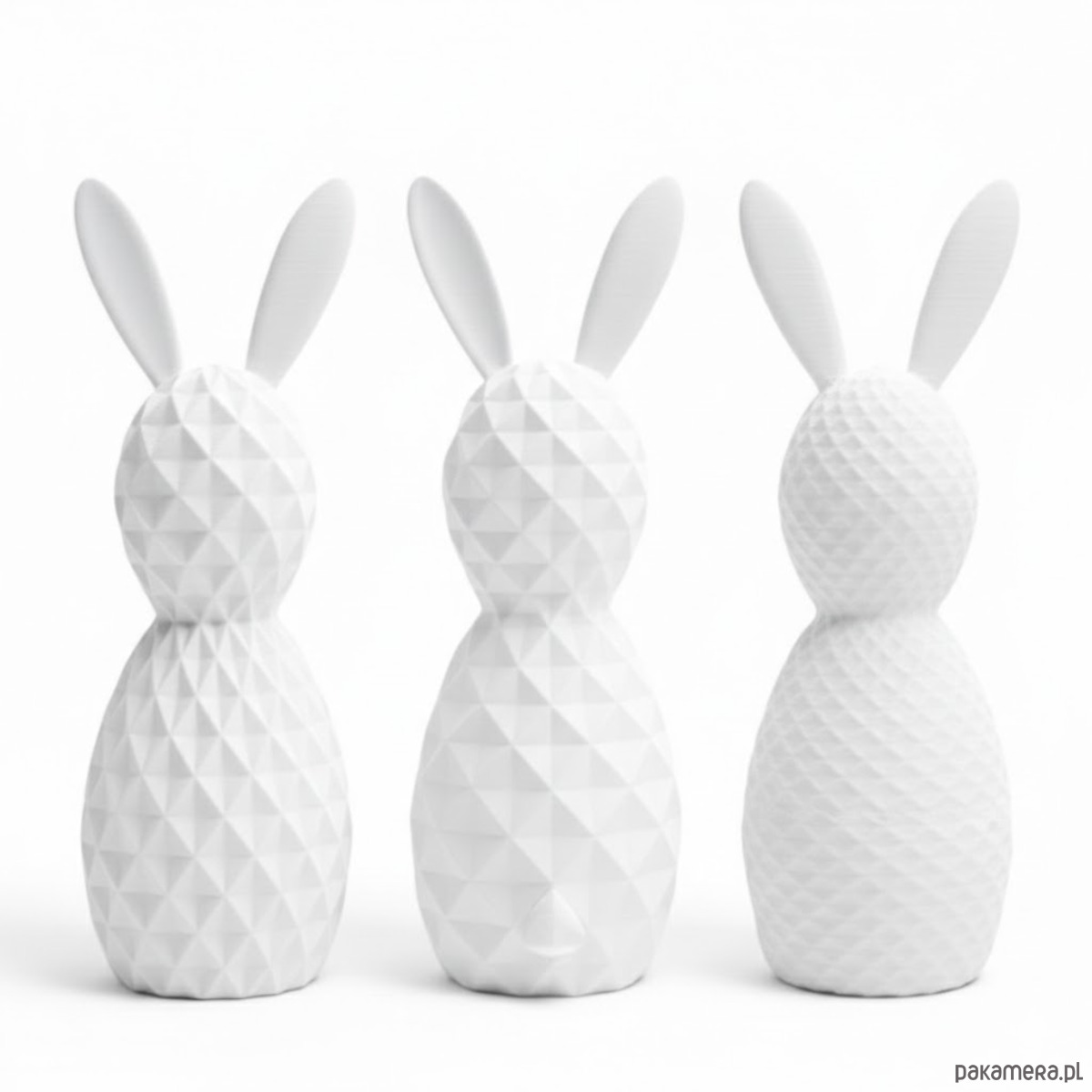 Biały Królik Figurka Stojąca 3SZT Dekoracja Wielkanocna Zając do Koszyka Urocza figurka wykonana za pomocą technologii druku 3D. Stanowi idealną ozdobę na Wielkanoc i dodaje świątecznego uroku każdemu wnętrzu. Dzięki solidnej podstawce możesz ustawić ją na stole, półce lub w koszyku wielkanocnym bez obawy, że się przewróci. Jest to wyjątkowy dodatek, który ożywi Twoje święta i stworzy przytulną, radosną atmosferę.