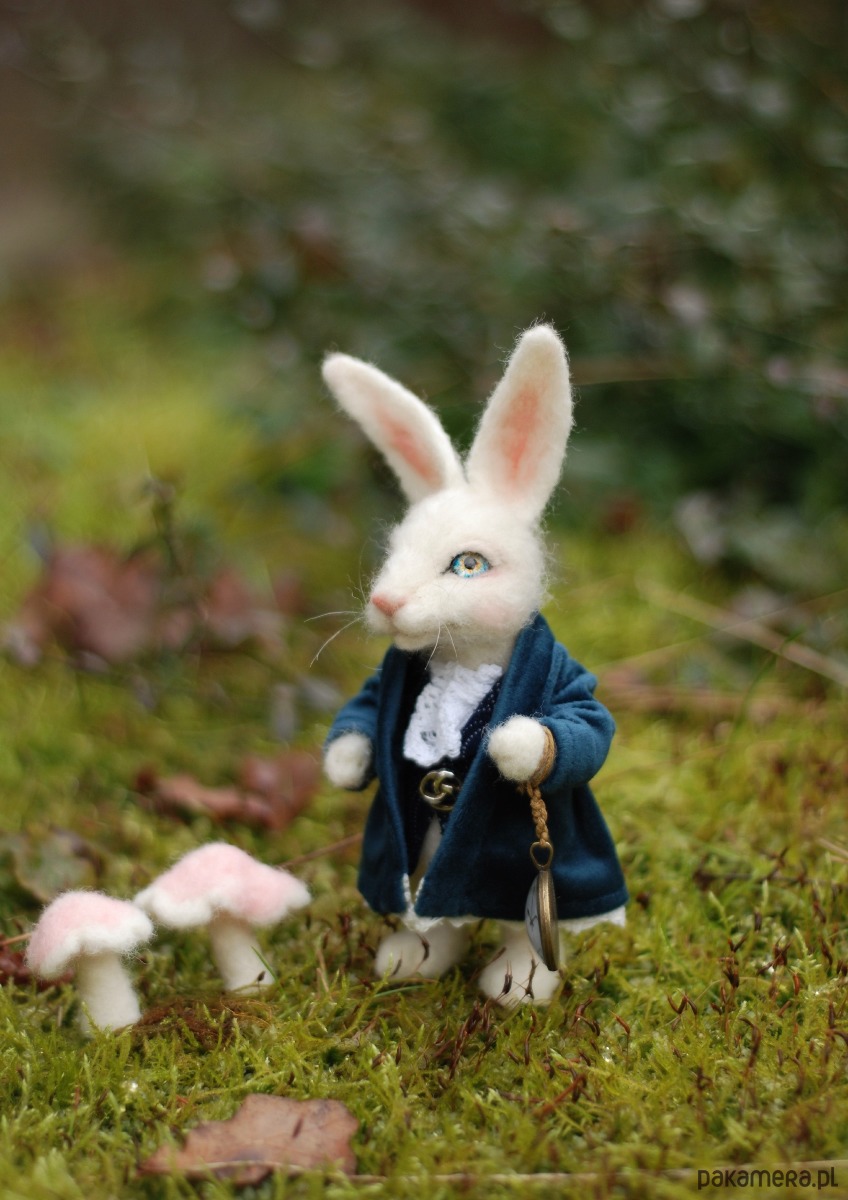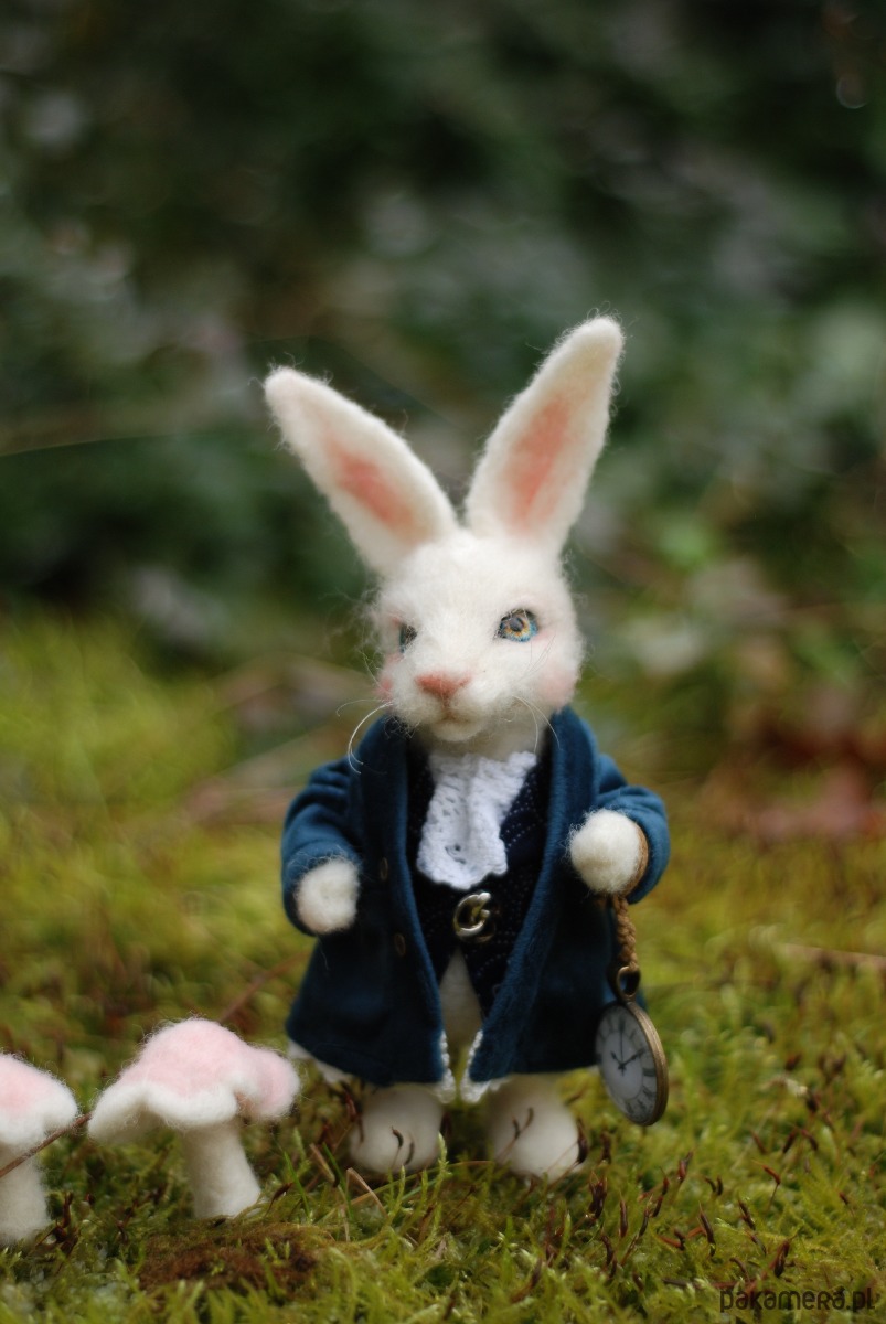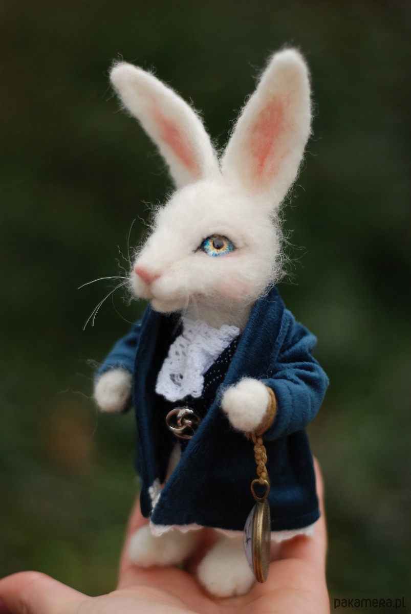 Królik wykonany metodą filcowania na sucho z wełny merynos.
