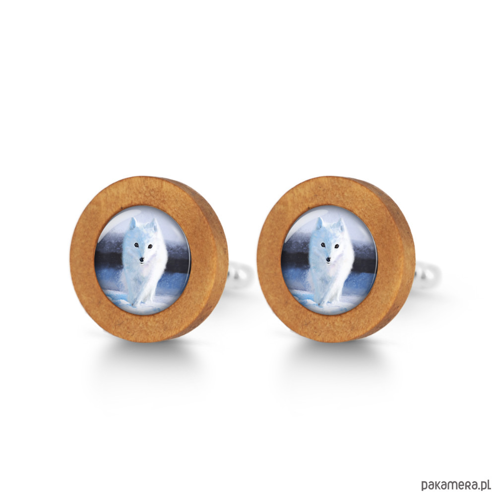 Biały lis - drewniane spinki do mankietów