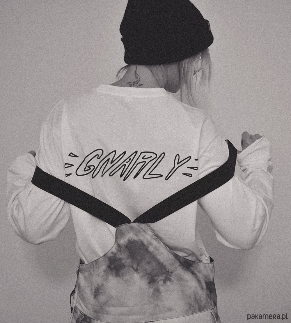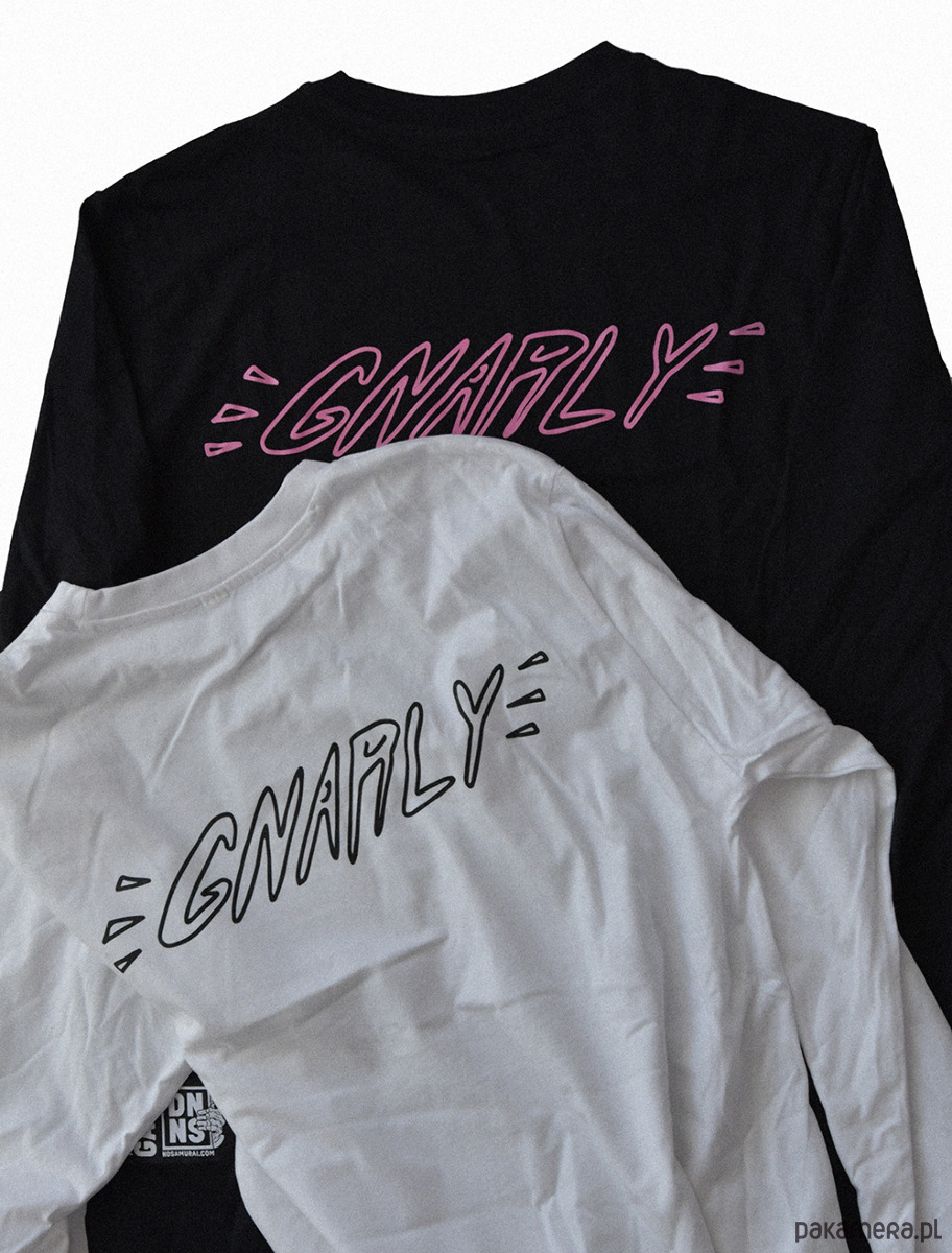 Czarny print DON'T NEED NO SAMURAI na froncie i GNARLY na plecach.