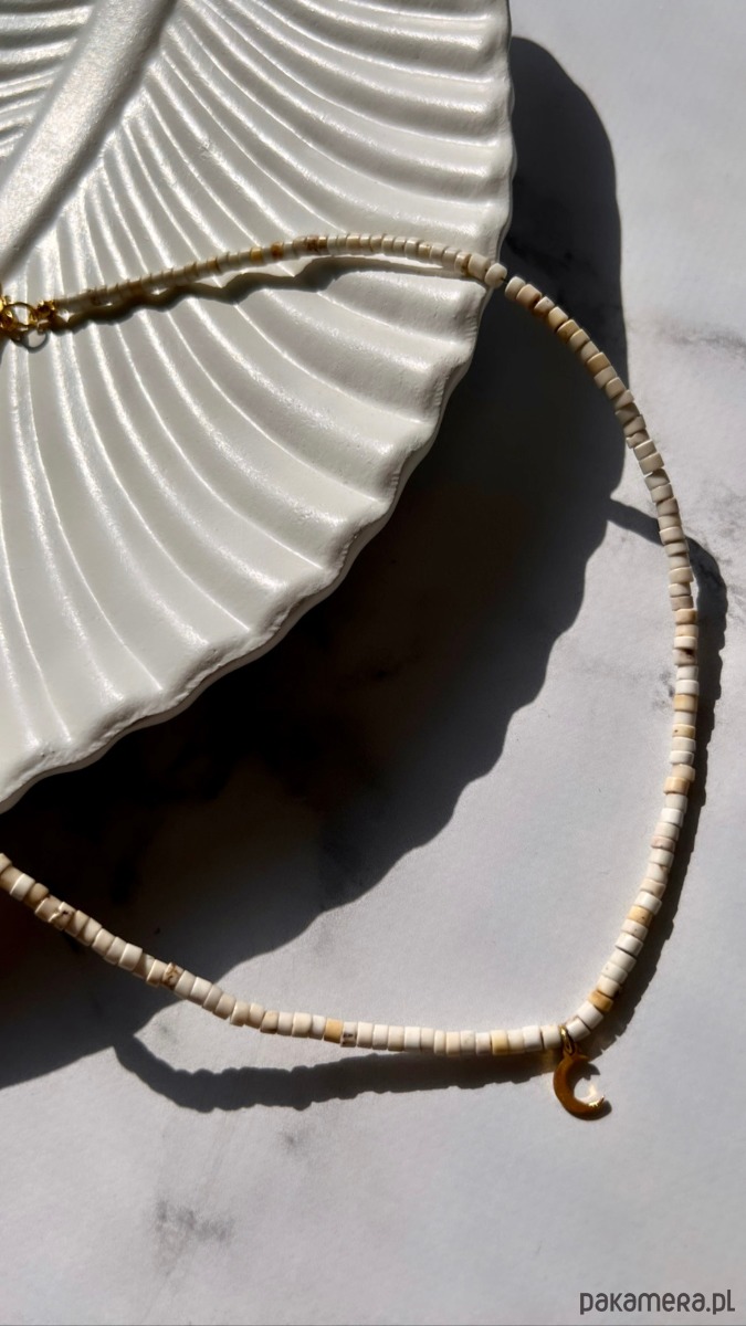 Naszyjnik wykonany z kamienia turkus biały i srebrnych pozłacanych elementów