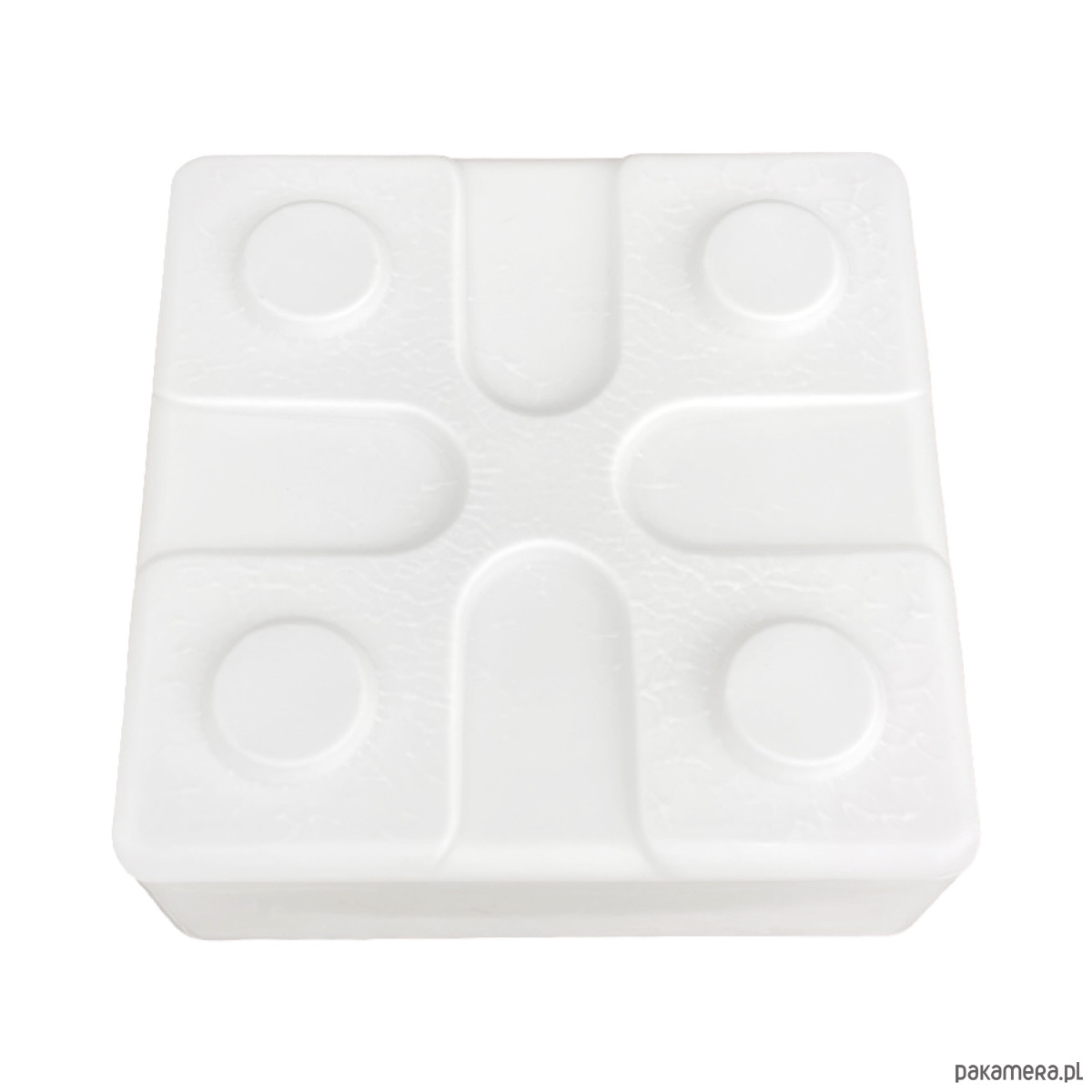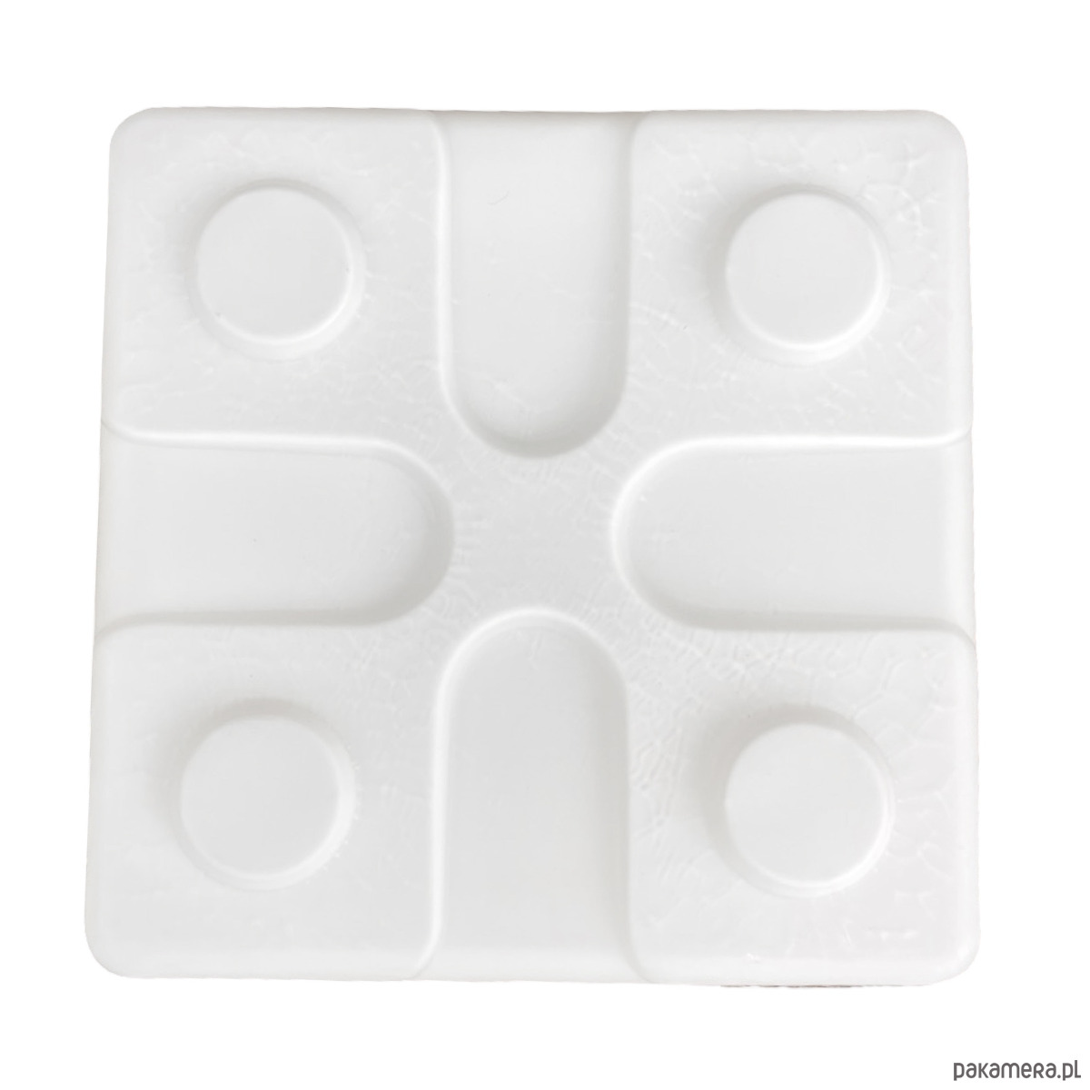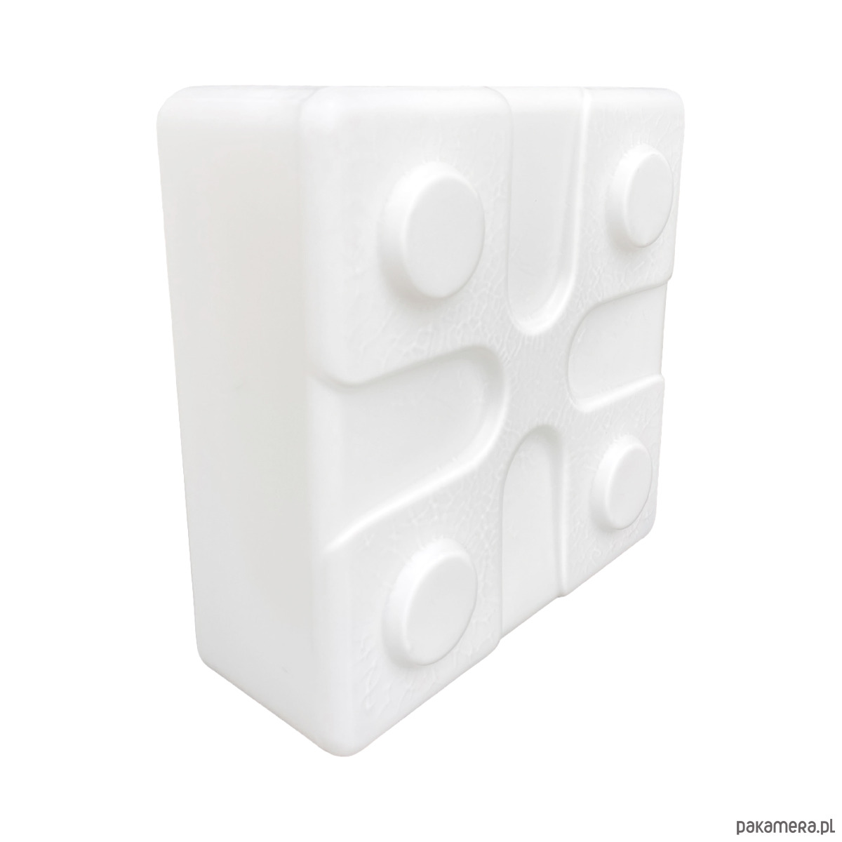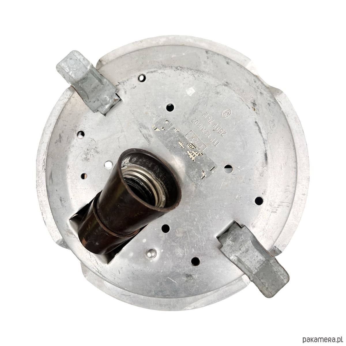 Plafon charakteryzuje się prostą, minimalistyczną formą, typową dla wzornictwa tamtych lat. Klosz wykonany jest z grubego, prasowanego szkła w kolorze mlecznej bieli, które pięknie rozprasza światło, tworząc w pomieszczeniu przyjemną, ciepłą atmosferę.
