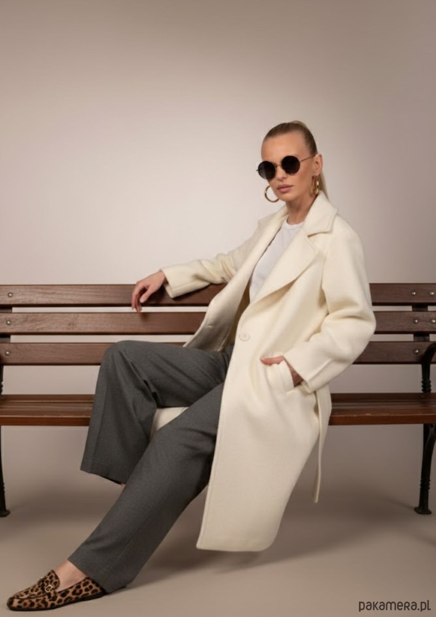 Biały płaszcz z paskiem
