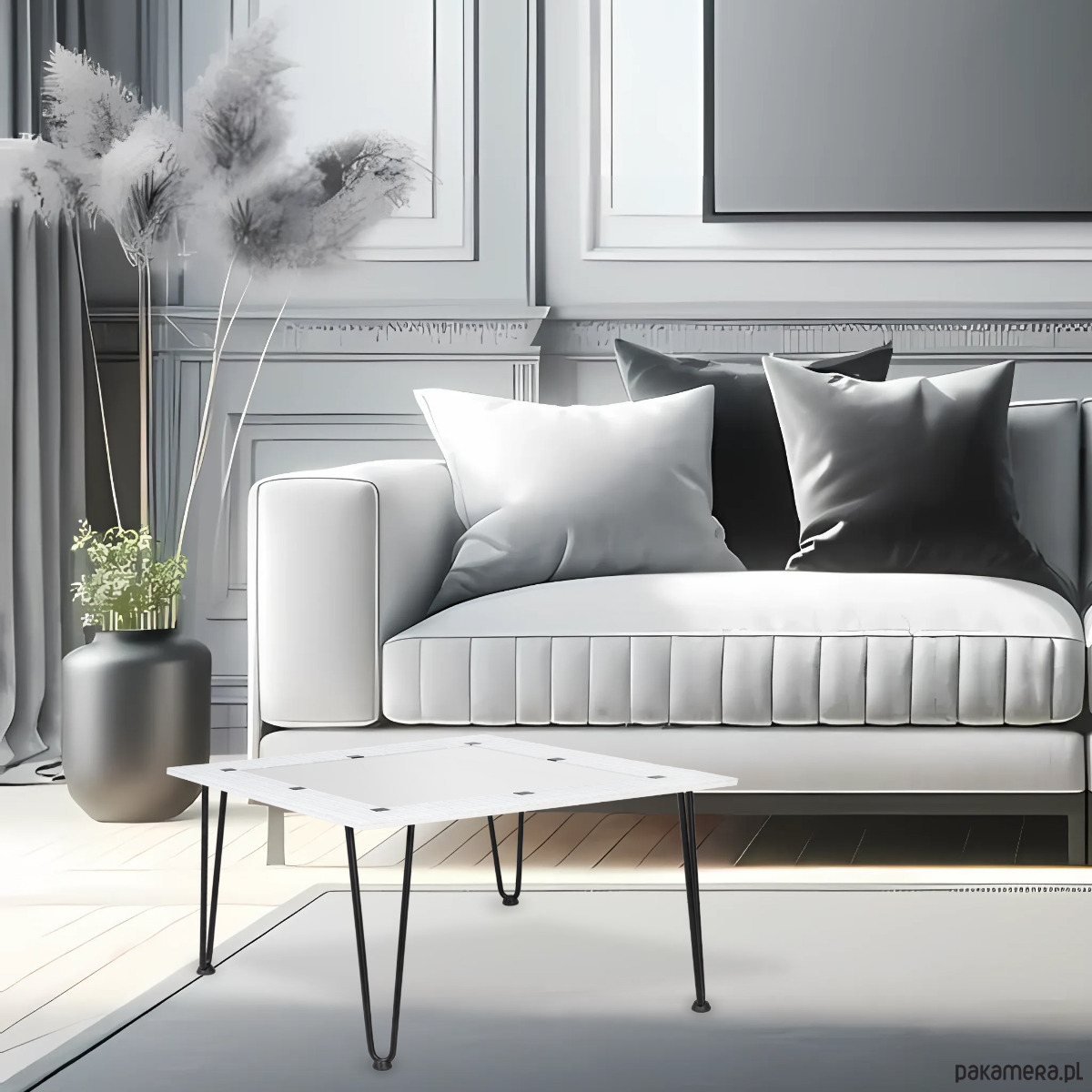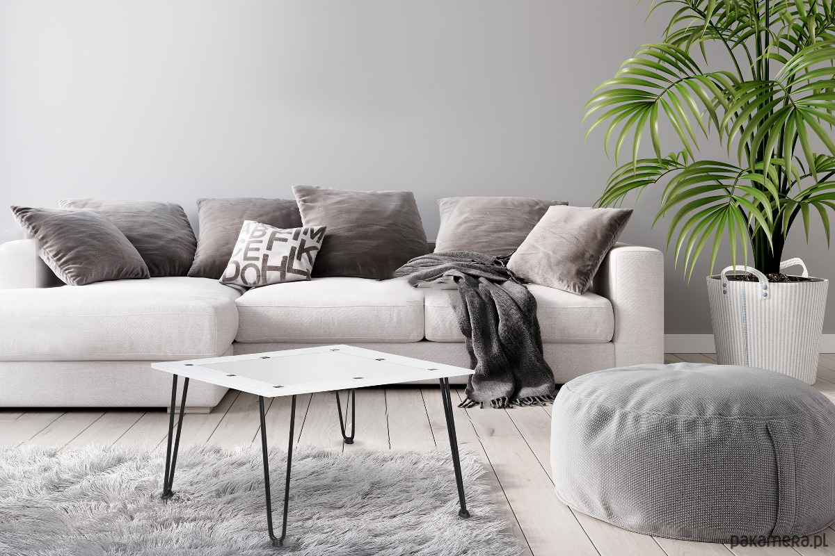 Biały stolik kawowy z lustrem, stolik kwadratowy, metalowy, glamour, do salonu
