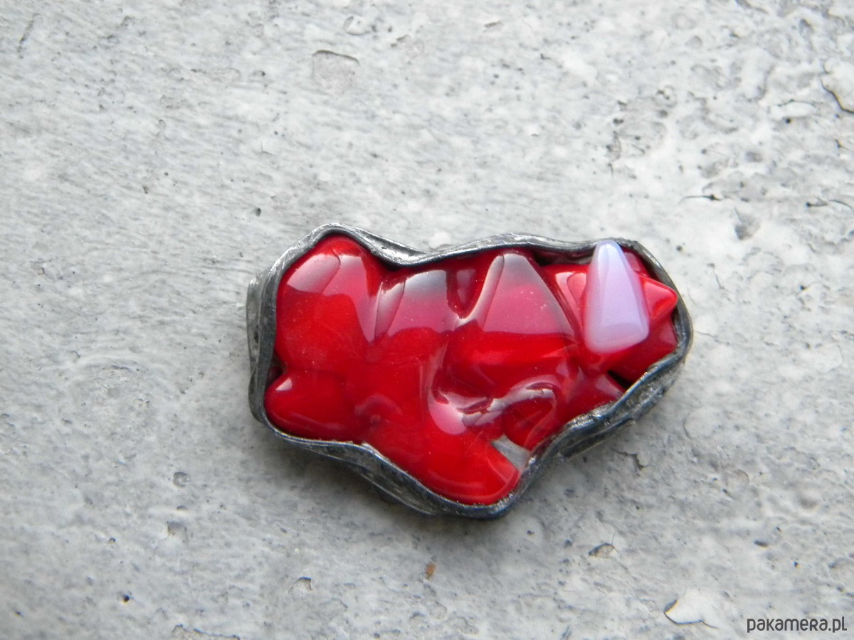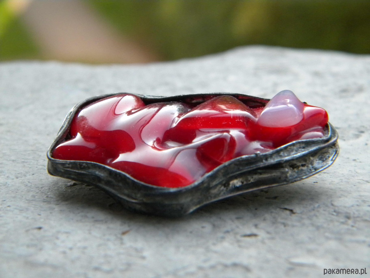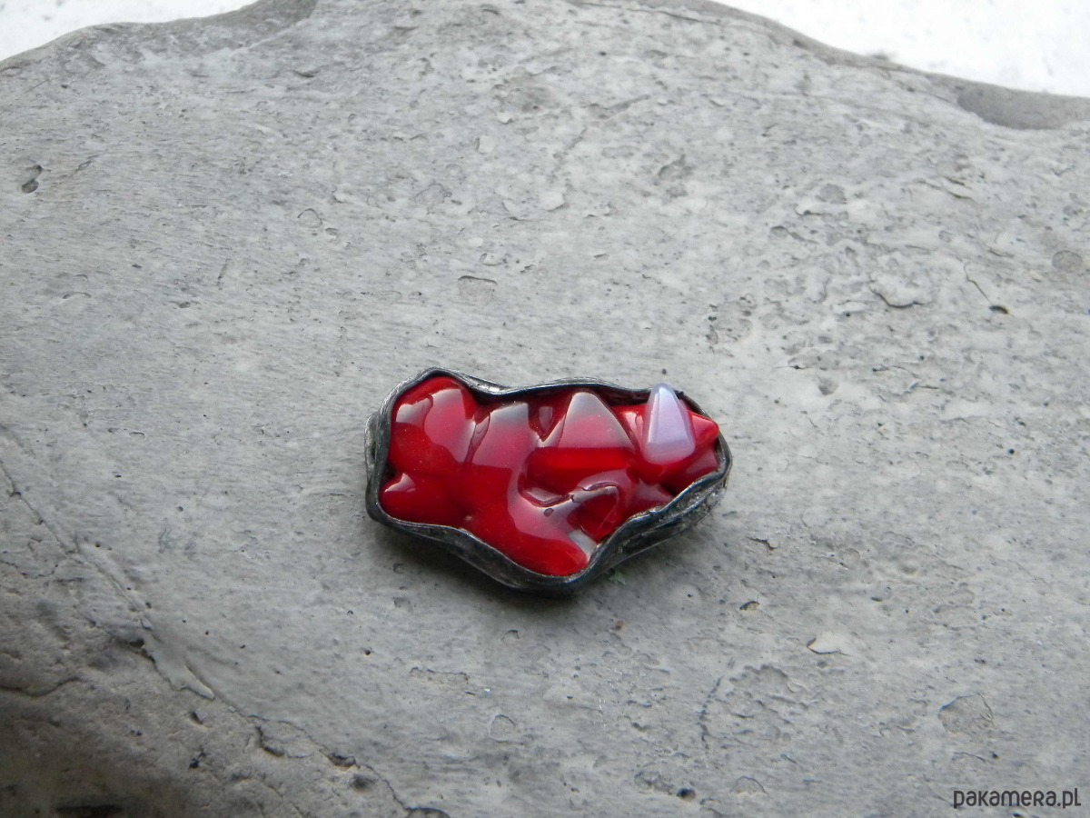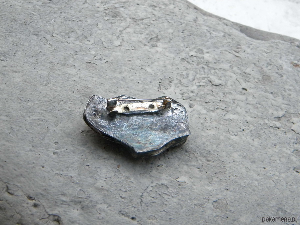 broszka ze szkła oprawionego w ocynowaną miedz.
