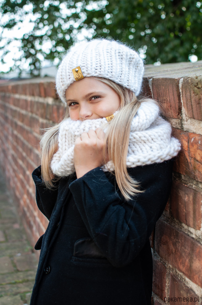 Biały komin z wełny i alpaki z kolekcji WOOLY