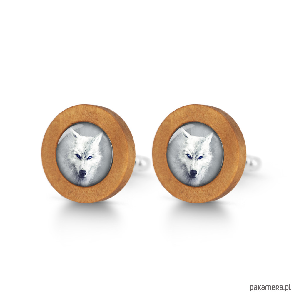 Biały wilk - drewniane spinki do mankietów