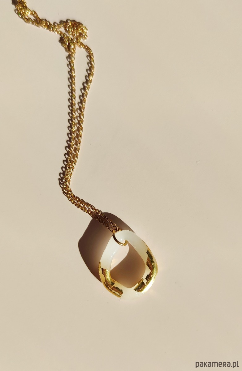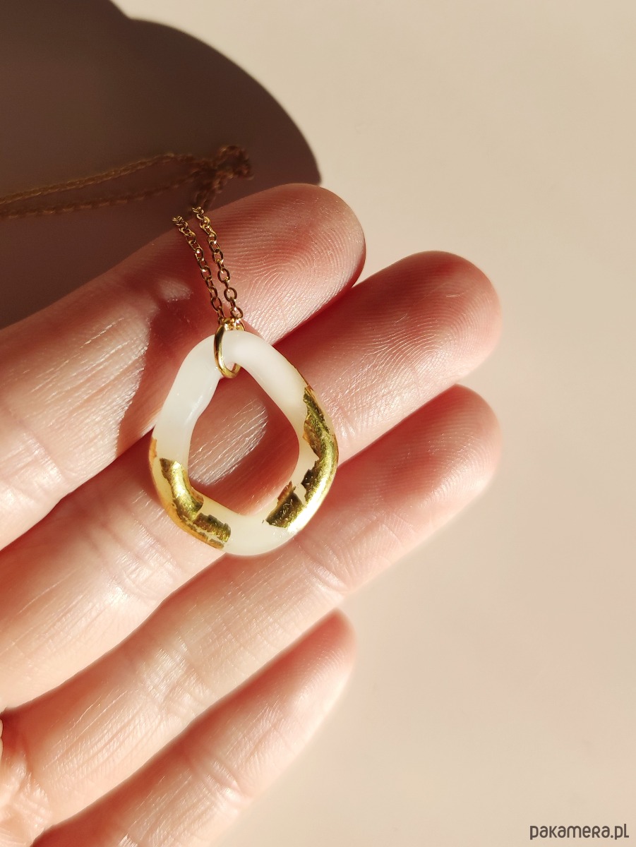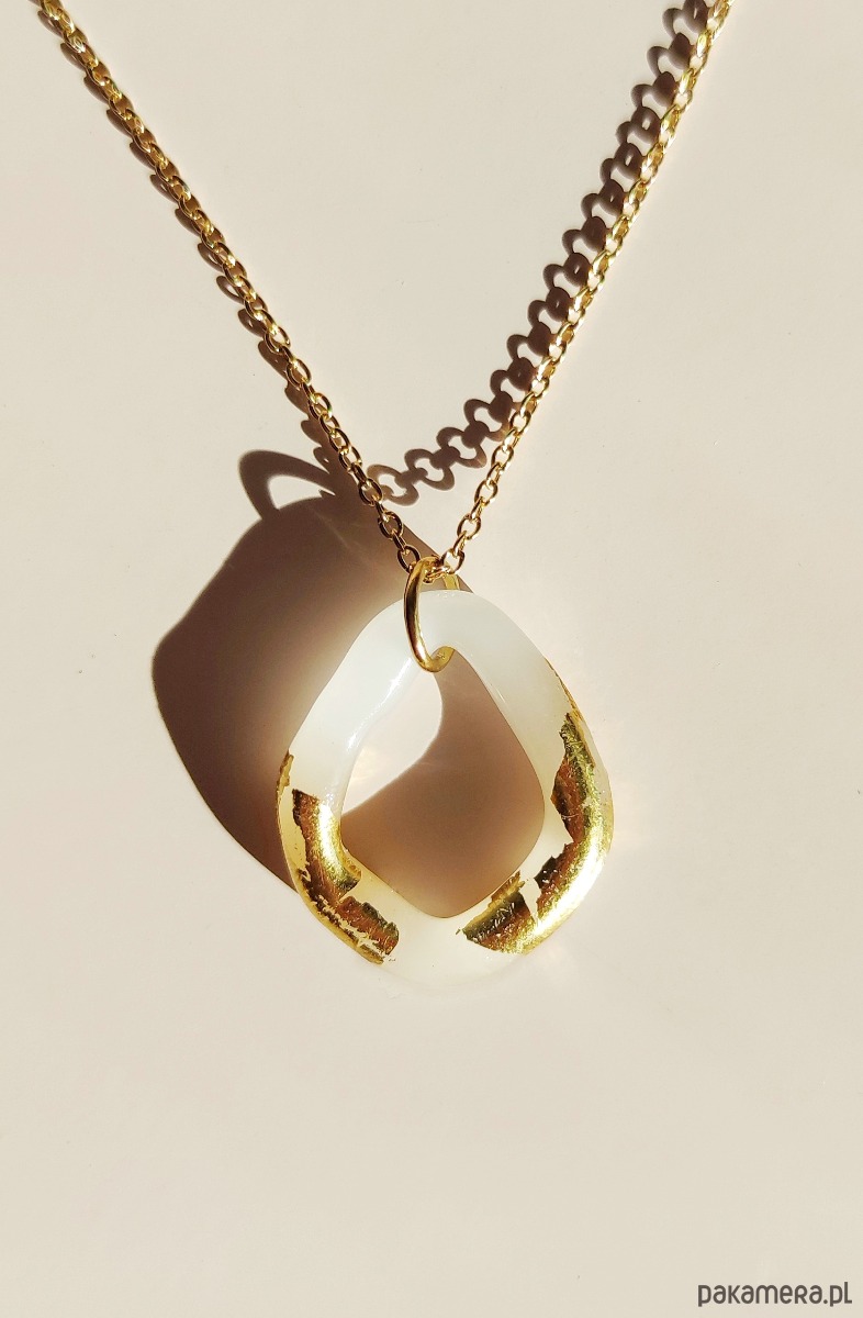 Biały wisiorek ze szkła pokrywany złotem płatkowym "Amorphic"