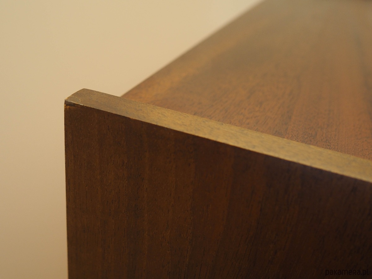 Stan: Powierzchnia mebla po odświeżeniu. Widoczne drobne zarysowania, obicia i wypełnione ubytki forniru. Większe ślady użytkowania przedstawione są na zdjęciach. Produkt jest gotowy do użytku.