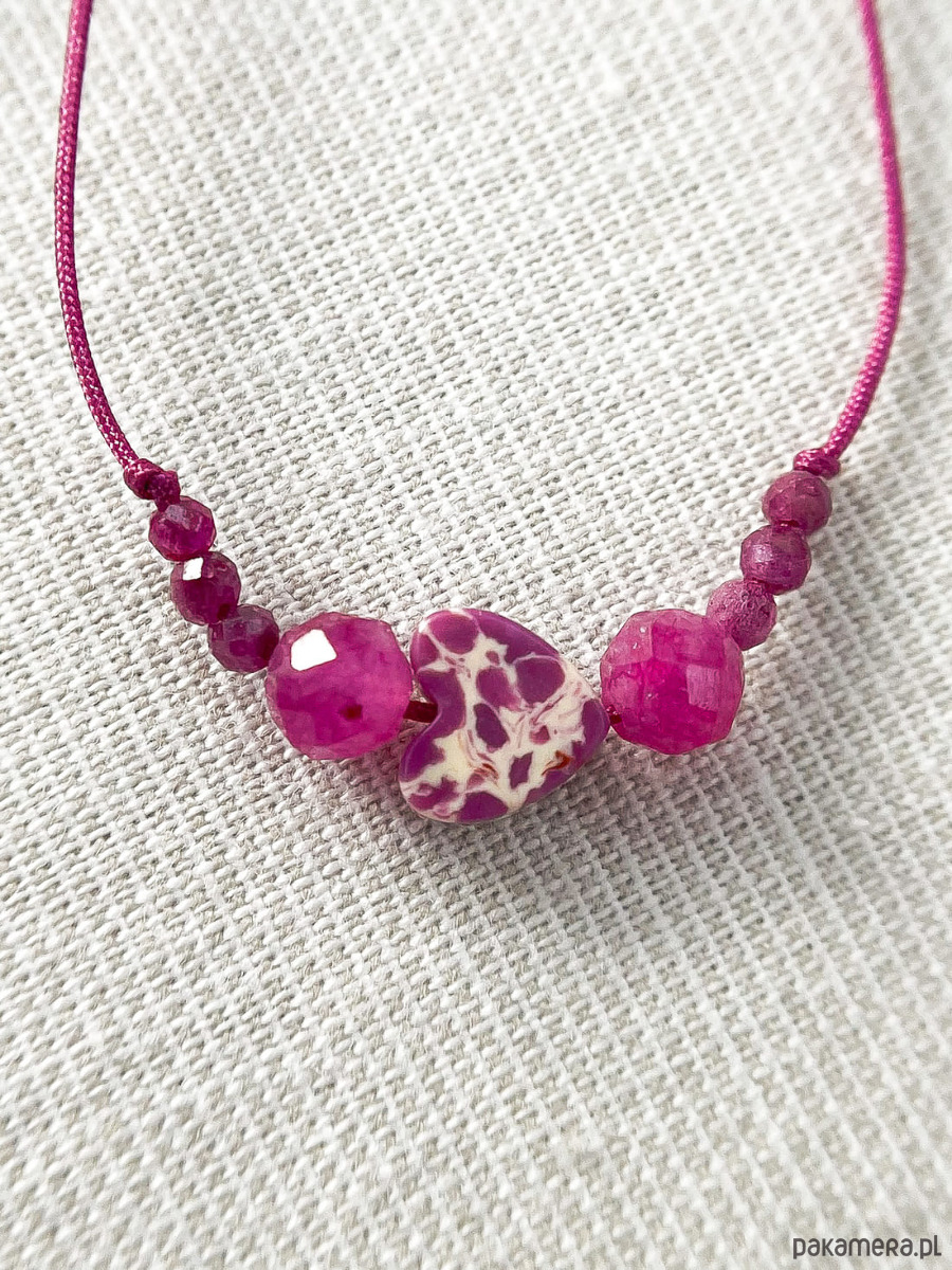 Kwarc czerwony 3,5mm; Jaspis cesarski serce 6mm; Rubin 2mm