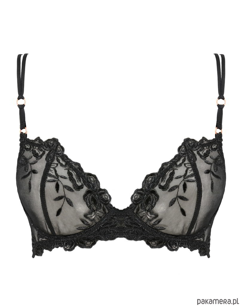 Biustonosz Mrs. Black No. 3 to zmysłowy krój half-cup, który idealnie profiluje zarówno mniejszy, jak i większy biust. Jest uszyty z ozdobnego, miękkiego haftu w klasycznym, czarnym kolorze. Możesz go zestawić z naszymi stringami lub figami Mrs. Black.