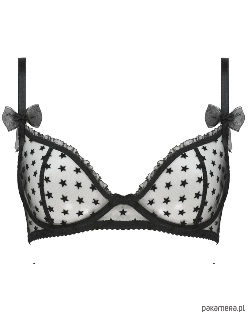 Transparentny biustonosz Make a Wish został uszyty z przezroczystego tiulu ozdobionego czarnymi, wypukłymi gwiazdkami. Biustonosz możesz połączyć ze stringami Make a Wish lub figami Make a Wish, dostępnymi w naszym sklepie.