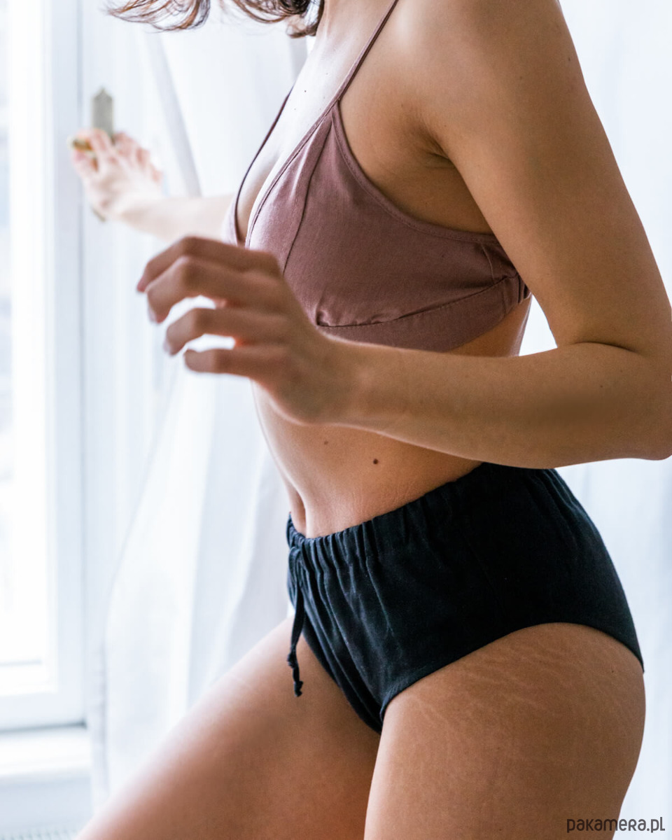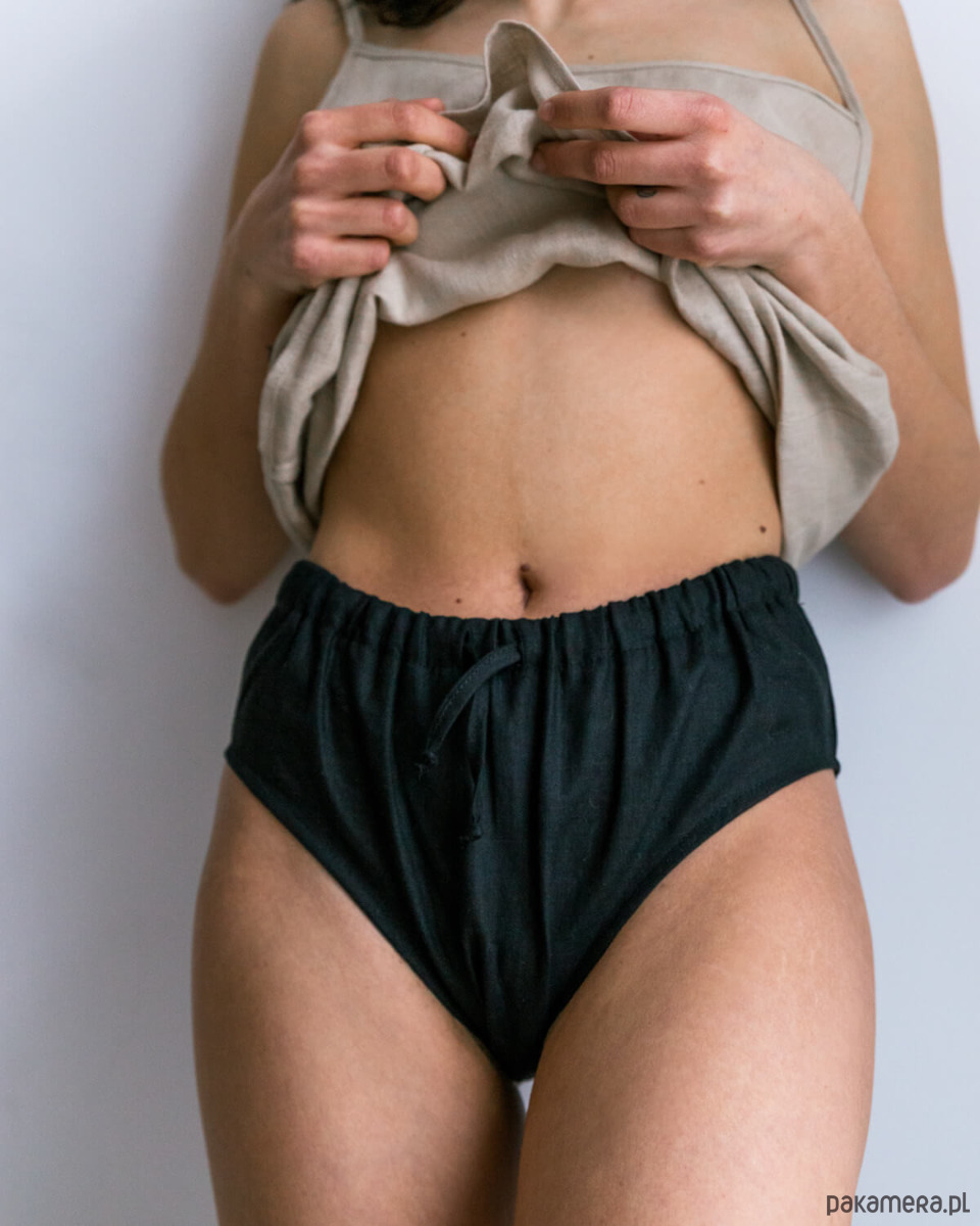 Lniane krótkie shorty np.do spania, idealnie się dopasowują. Komfortowe i wygodne na każdą porę roku. Len stosowany jako bielizna zmniejsza zmęczenie i zdecydowanie poprawia nastrój. Lniane majtki pozwalają ciału swobonie “oddychać”, pochłaniają dodatkowo wilgoć co jest bardzo korzystną właściwością, przyczyniającą się do zachowania właściwej flory bakteryjnej miejsc intymnych. Nasz len jest wyjątkowo miękki i delikatny, nie powoduje żadnych podrażnień. Jest antybakteryjny i antyalergiczny. Idealny dla osób z wrażliwą i delikatną skórą.