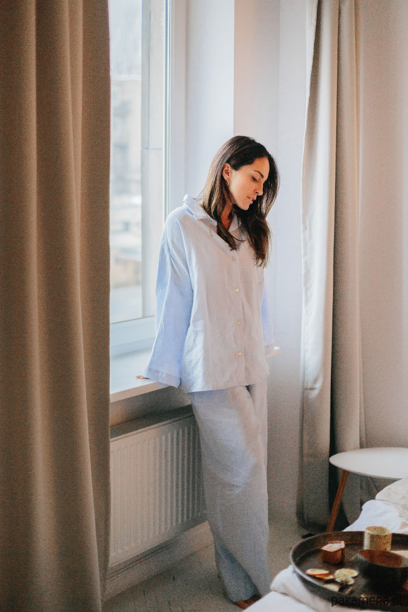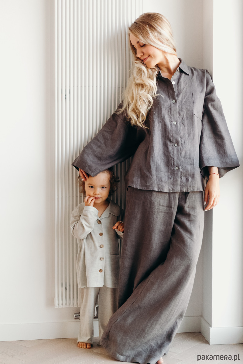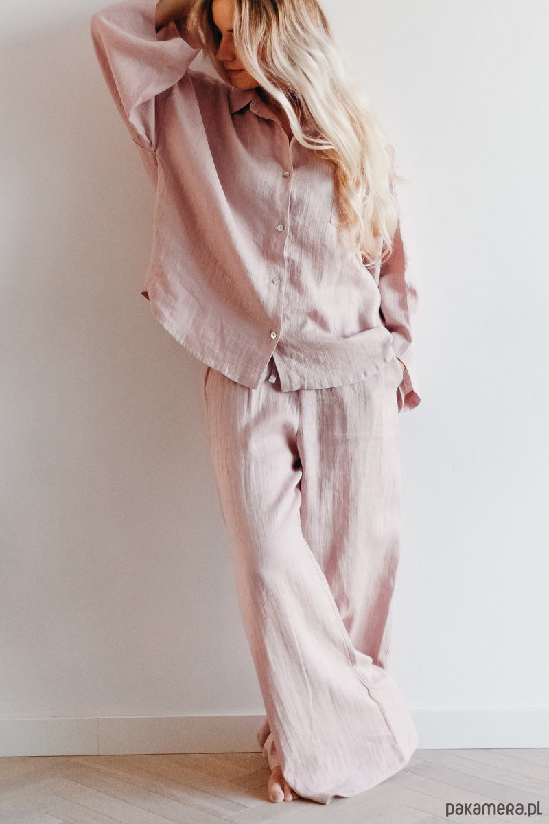 Piżama w stylu 'lifewear' z gładkiego, zmiękczonego lnu.