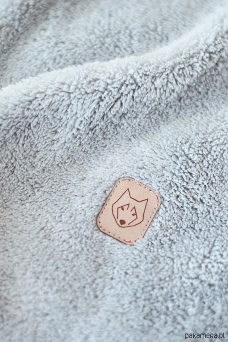 ozdobna naszywka z logo wilka z przodu pod paskiem