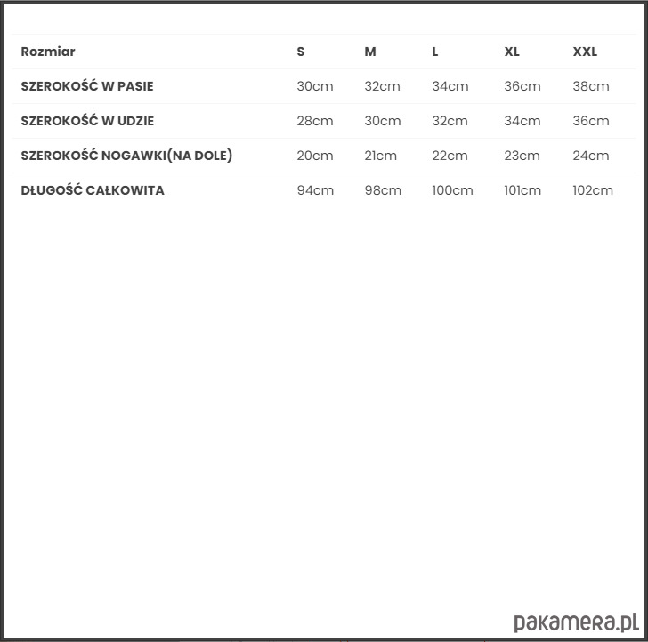 długie nogawki zakończone ściągaczem