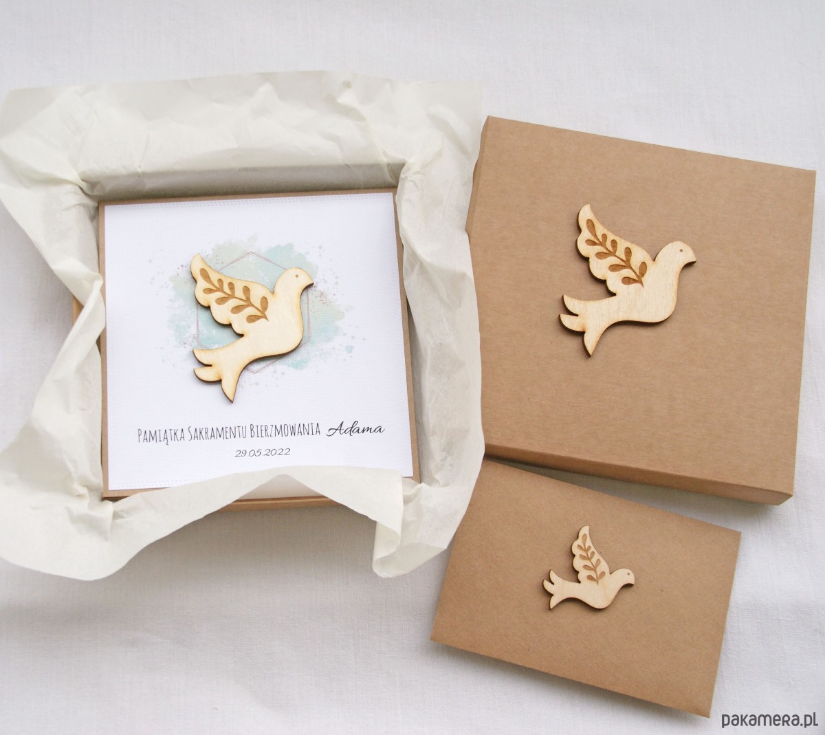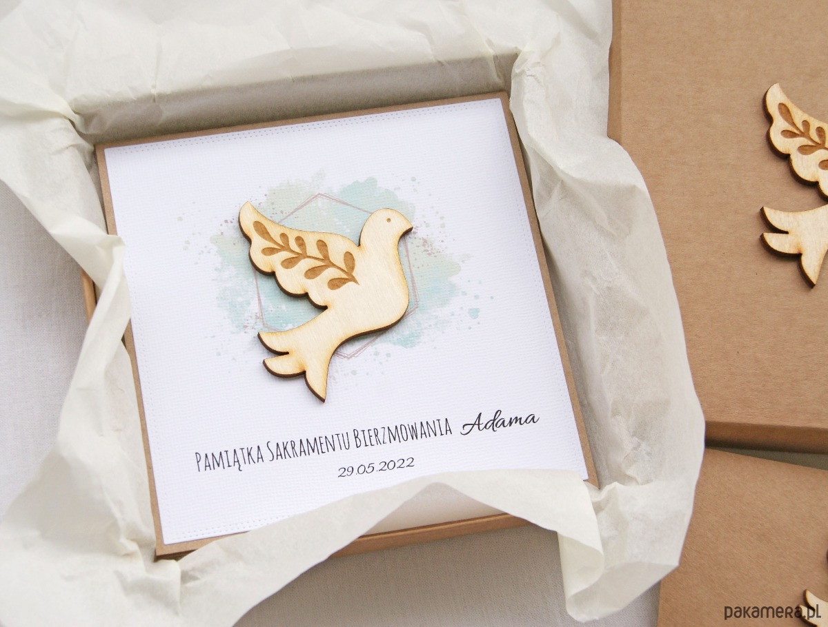 Bierzmowanie -kartka, personalizacja, pudełko, koperta