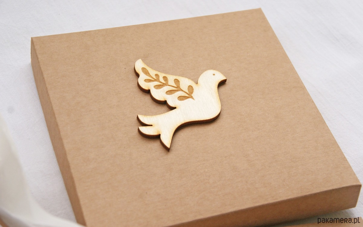 kartka znajduje się w pudełku (wyściełanym kremową bibułą) z elementem drewnianym.