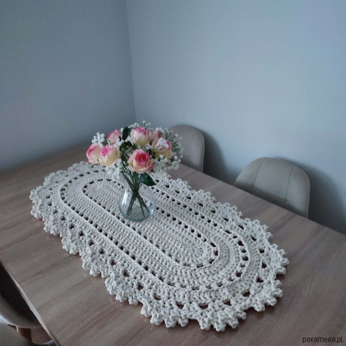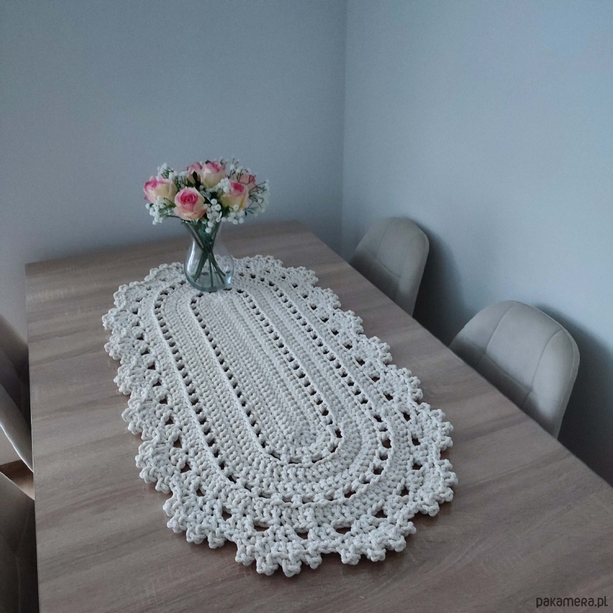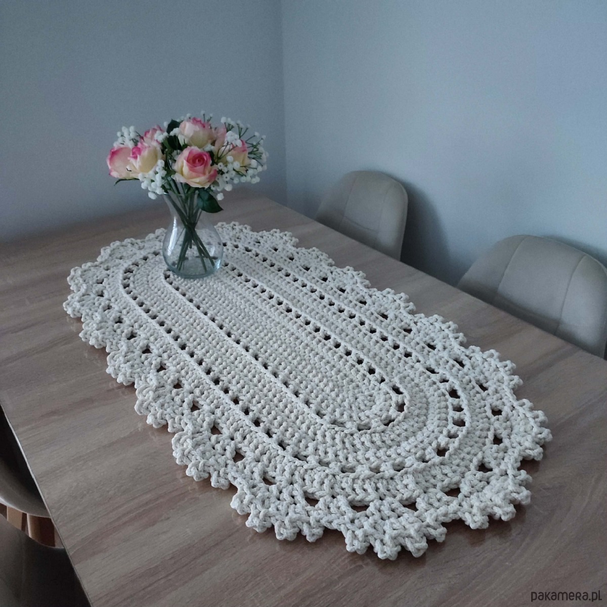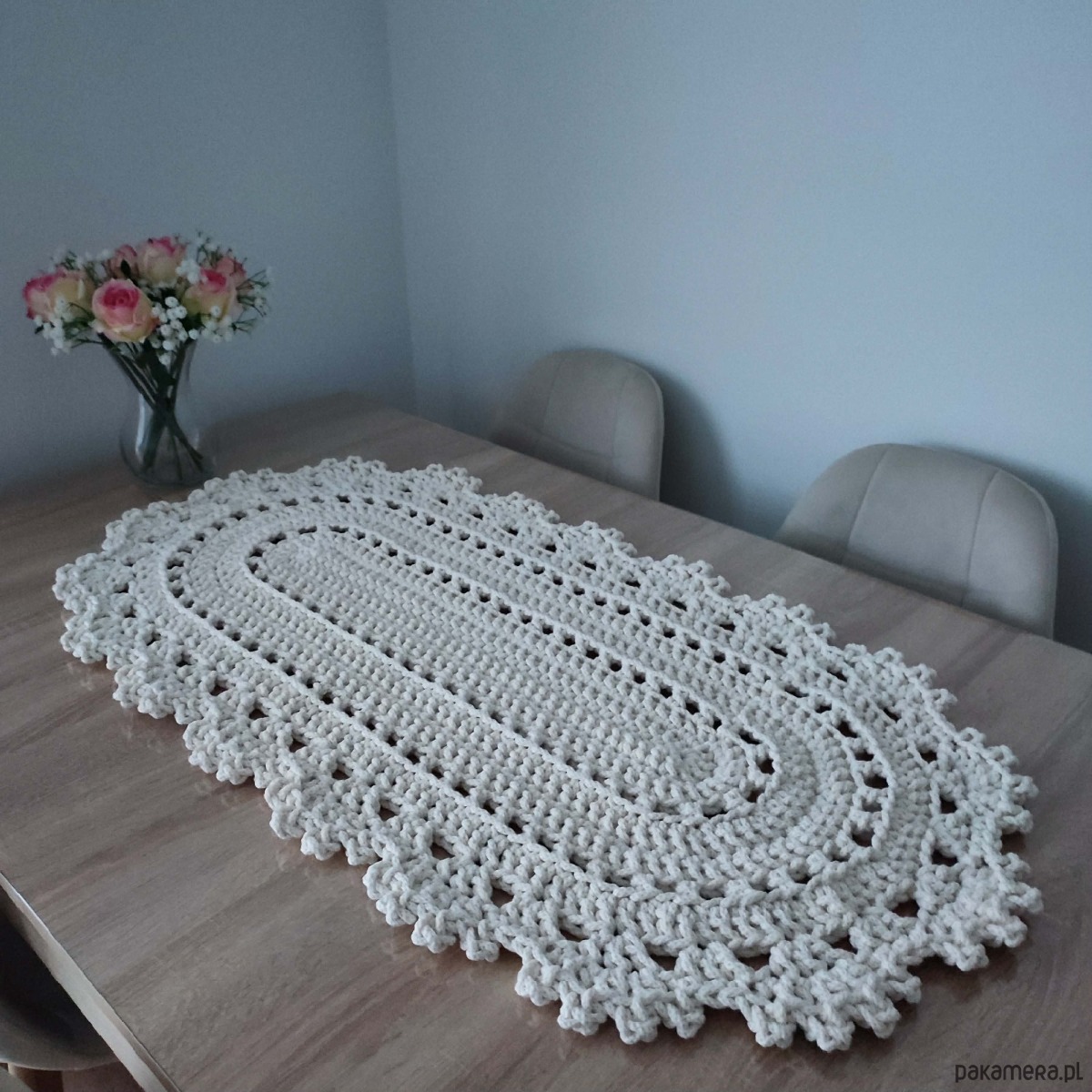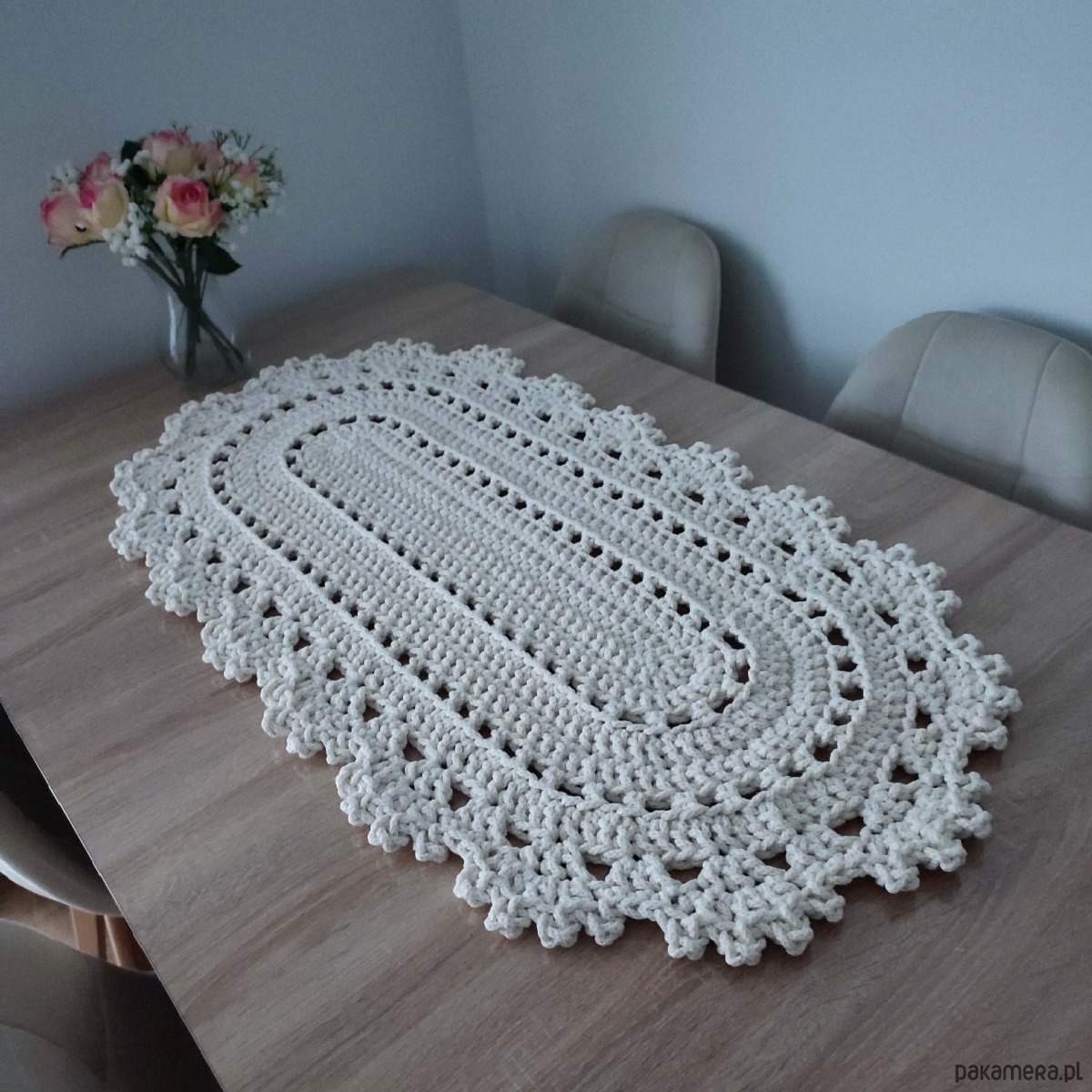 Bieżnik owalny szydełkowy ze sznurka bawełnianego 50cmx100cm