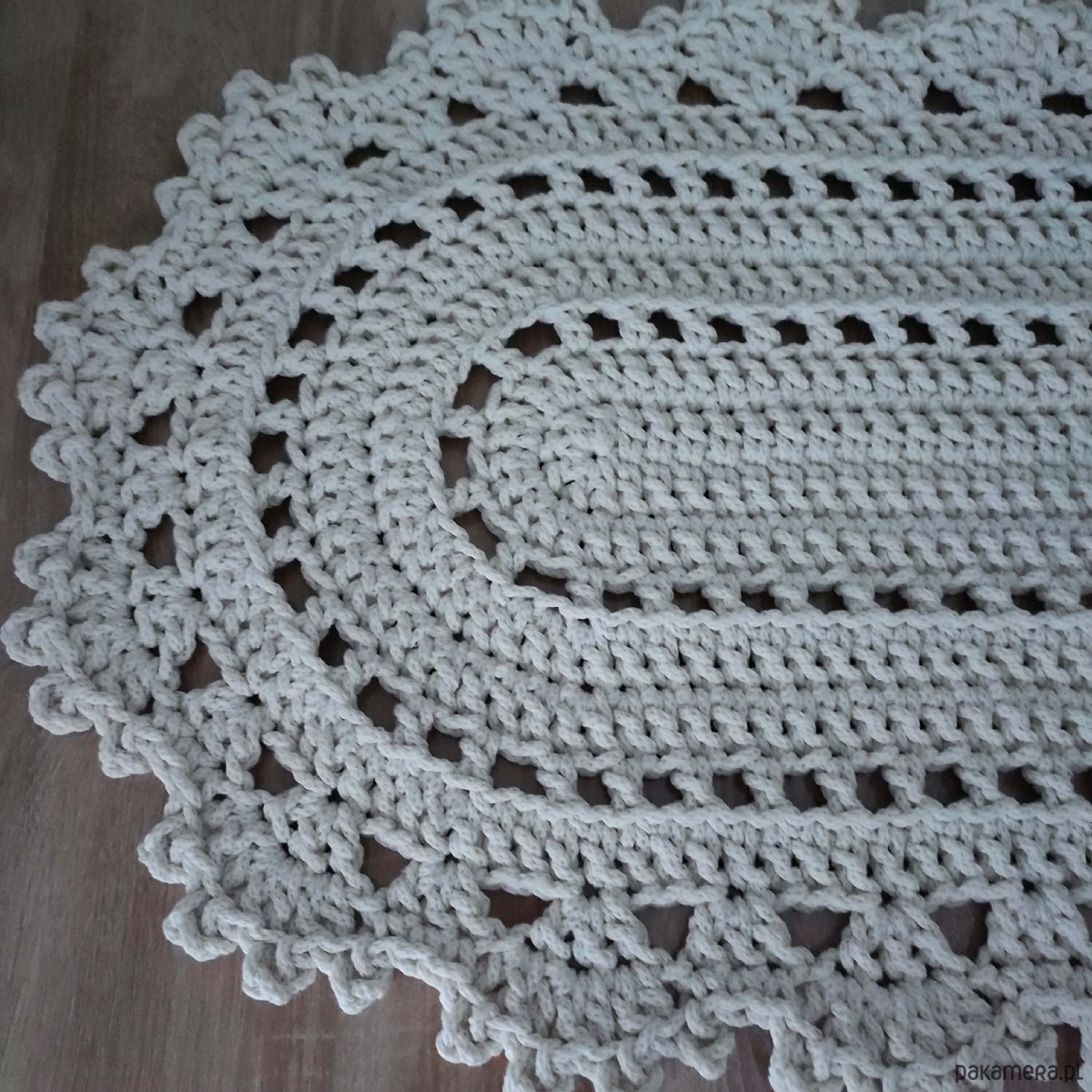 Bieżnik o wymiarach 50cmx100cm, wykonany metodą szydełkowania z polskiego sznurka bawełnianego 5mm.