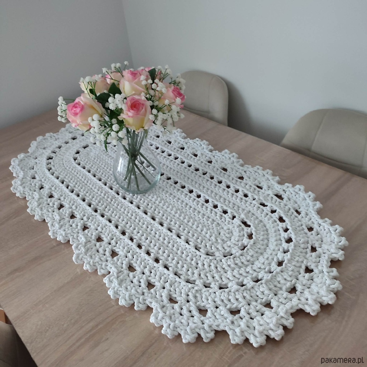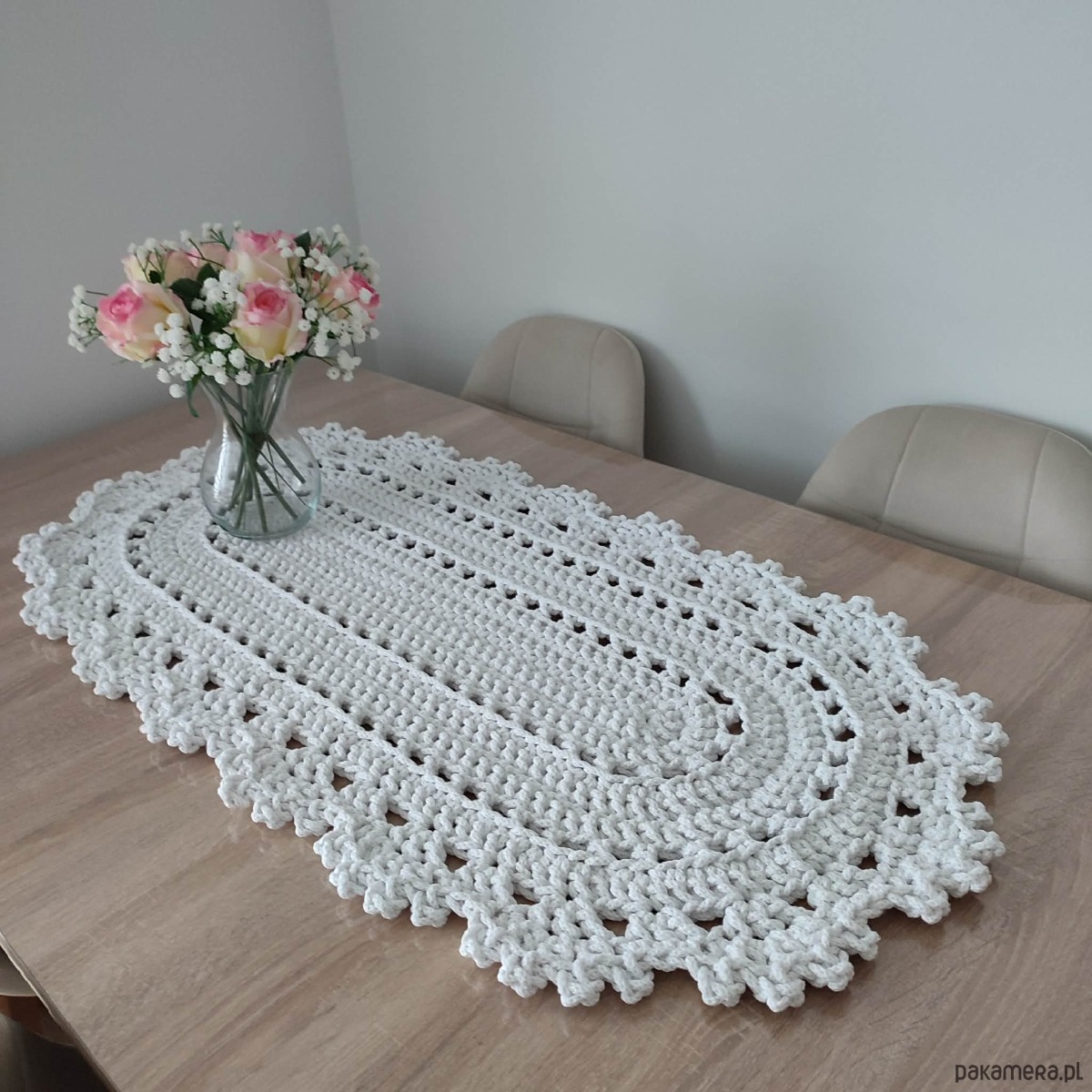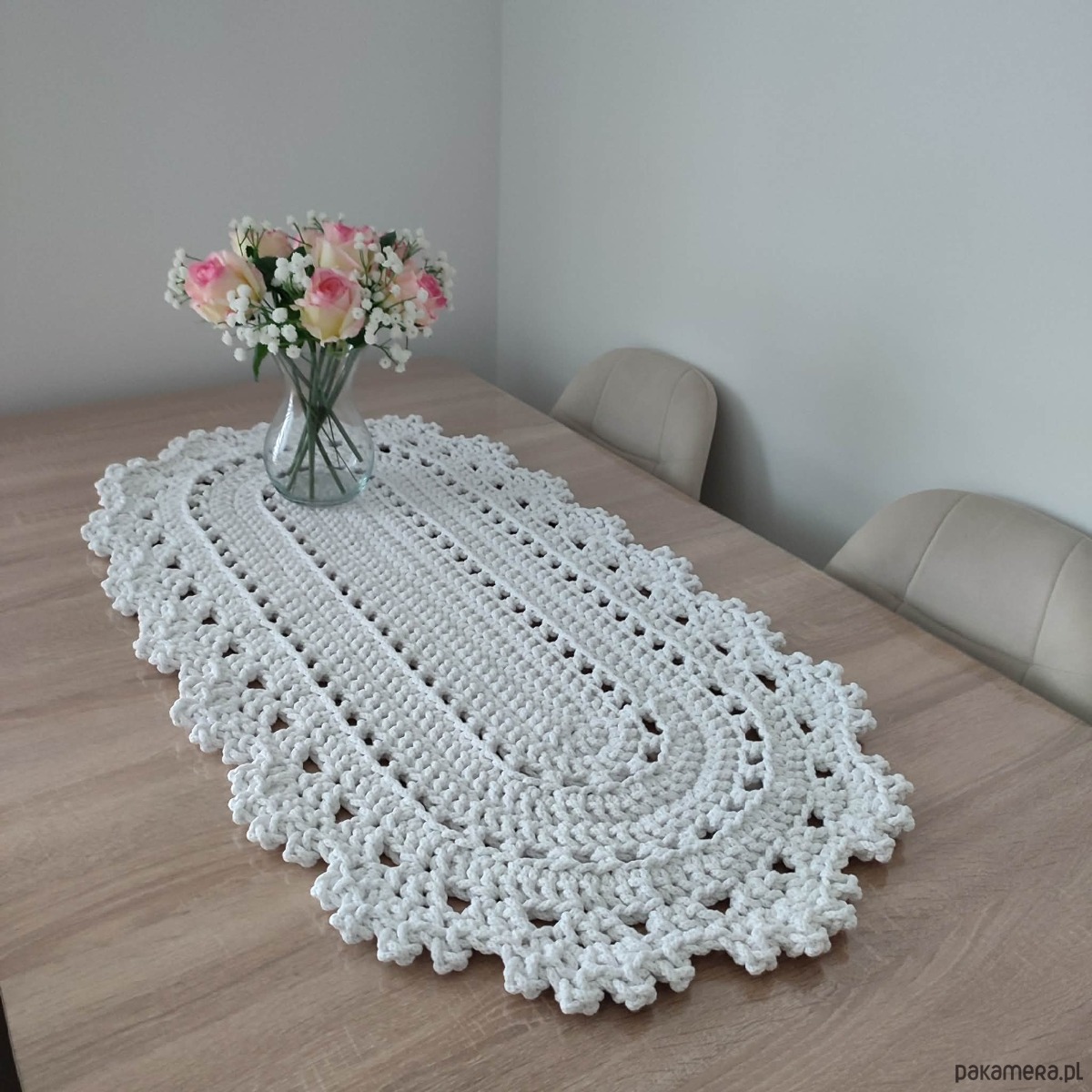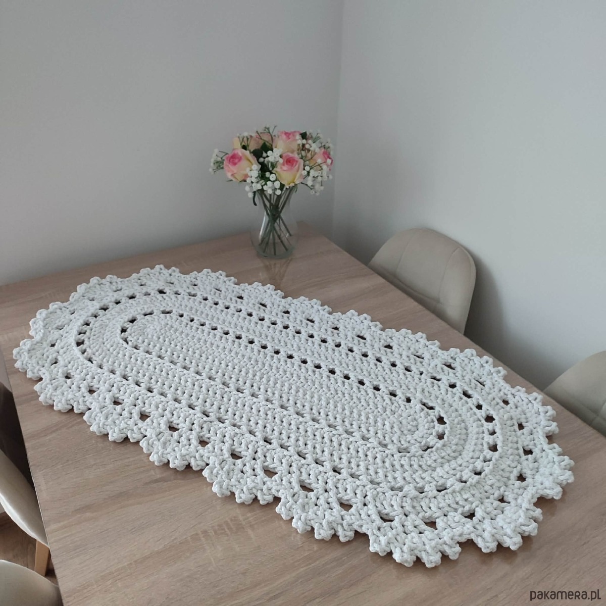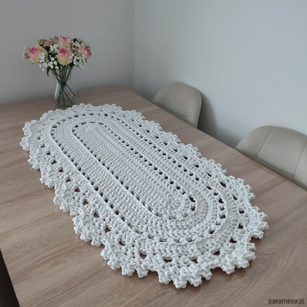 Bieżnik szydełkowy ze sznurka bawełnianego owalny 50cmx95cm