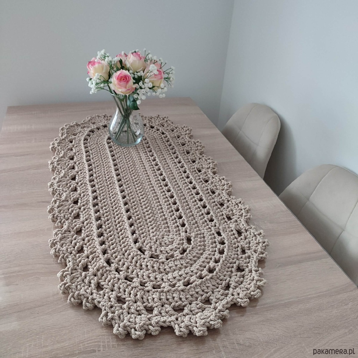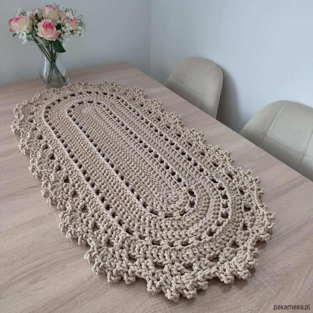 Bieżnik szydełkowy ze sznurka owalny 50cmx100cm
