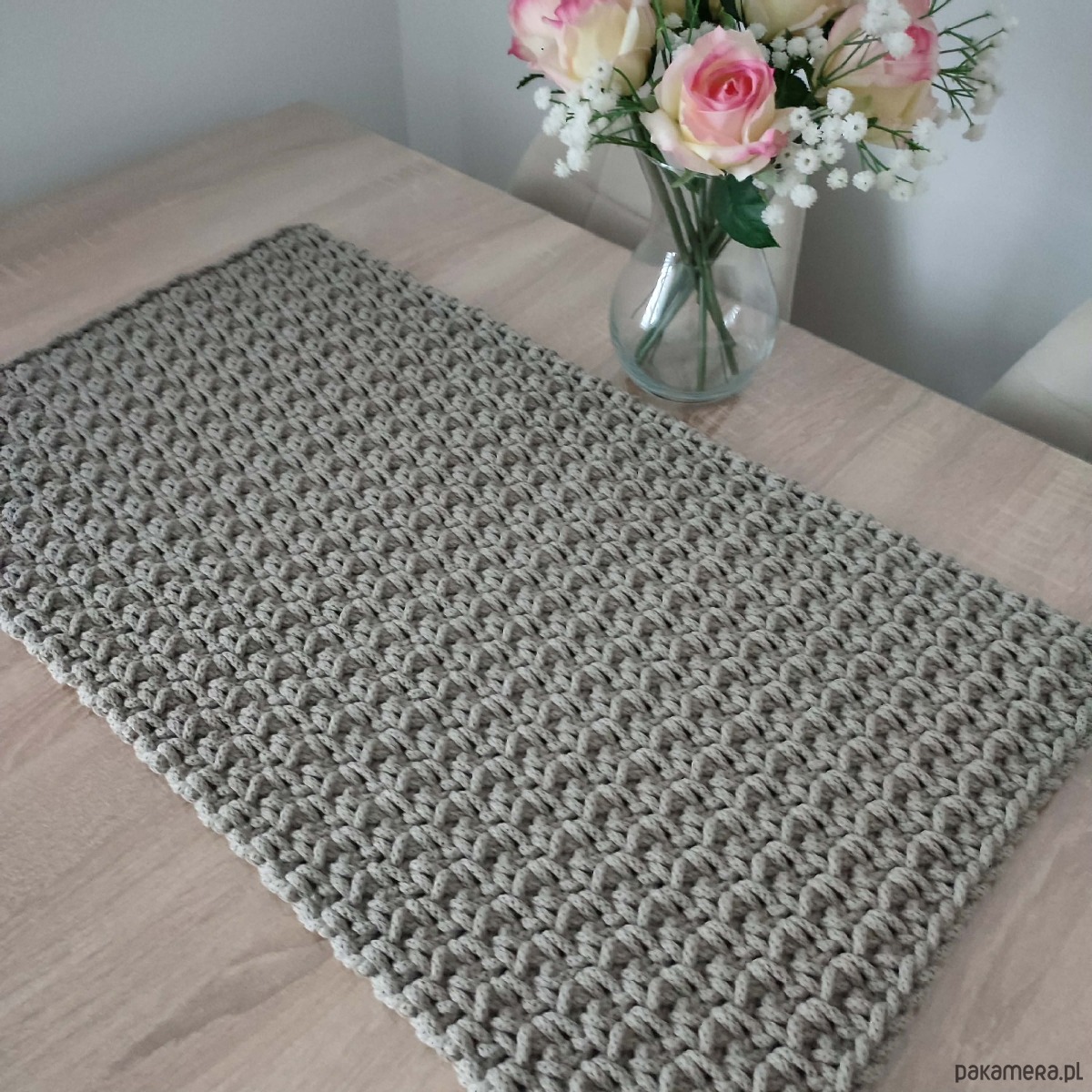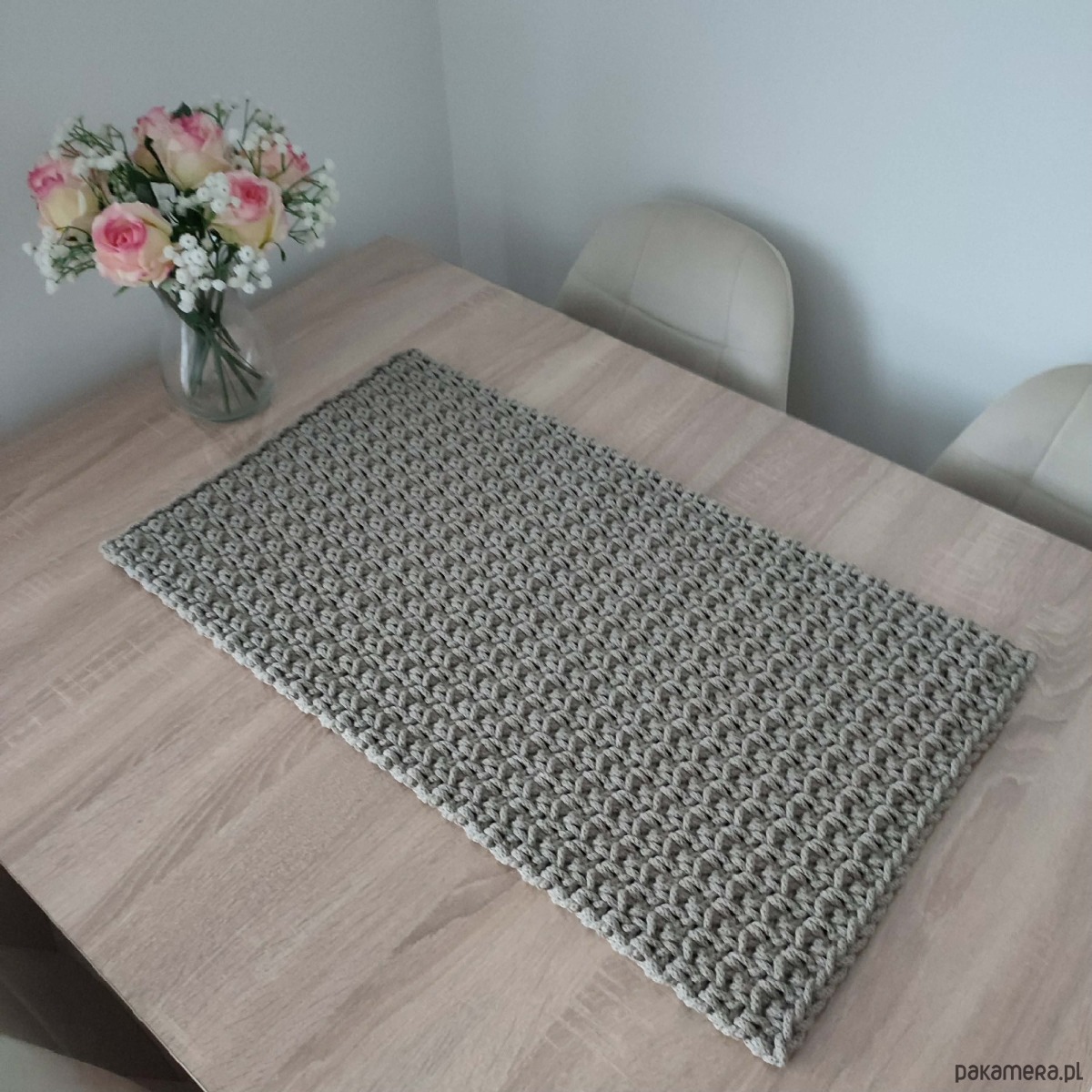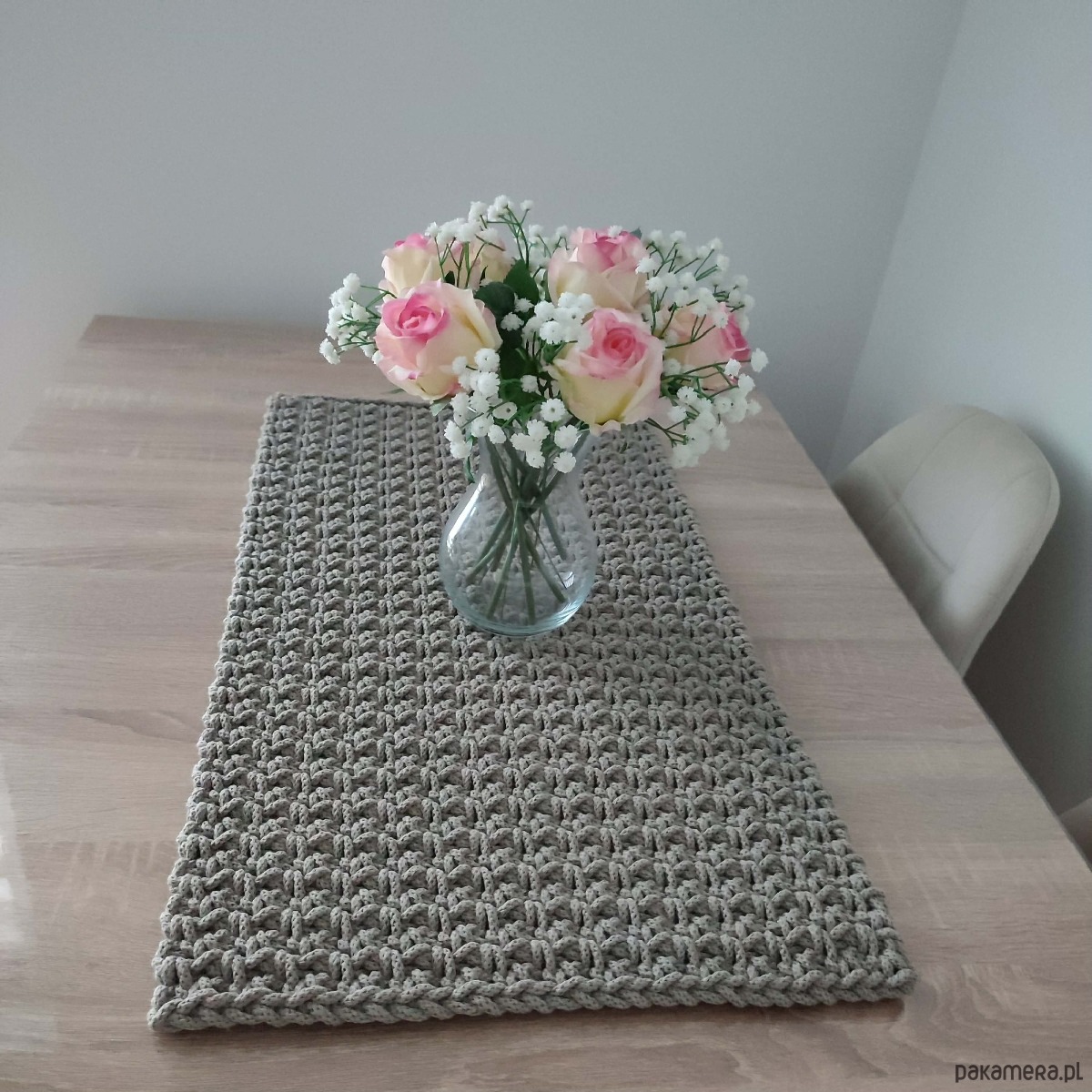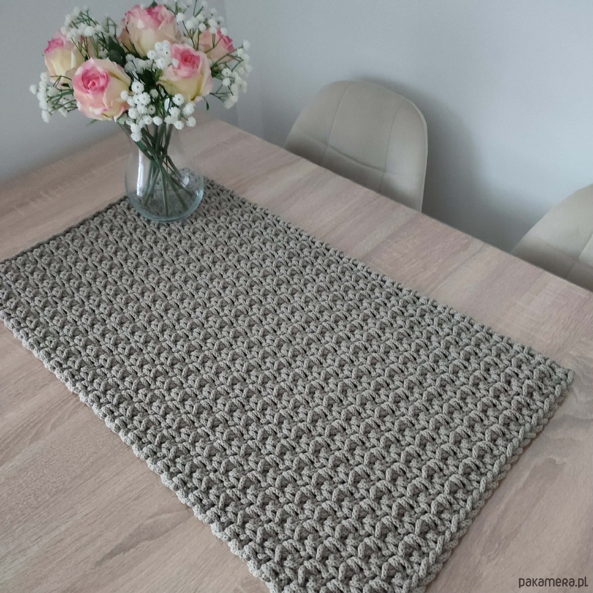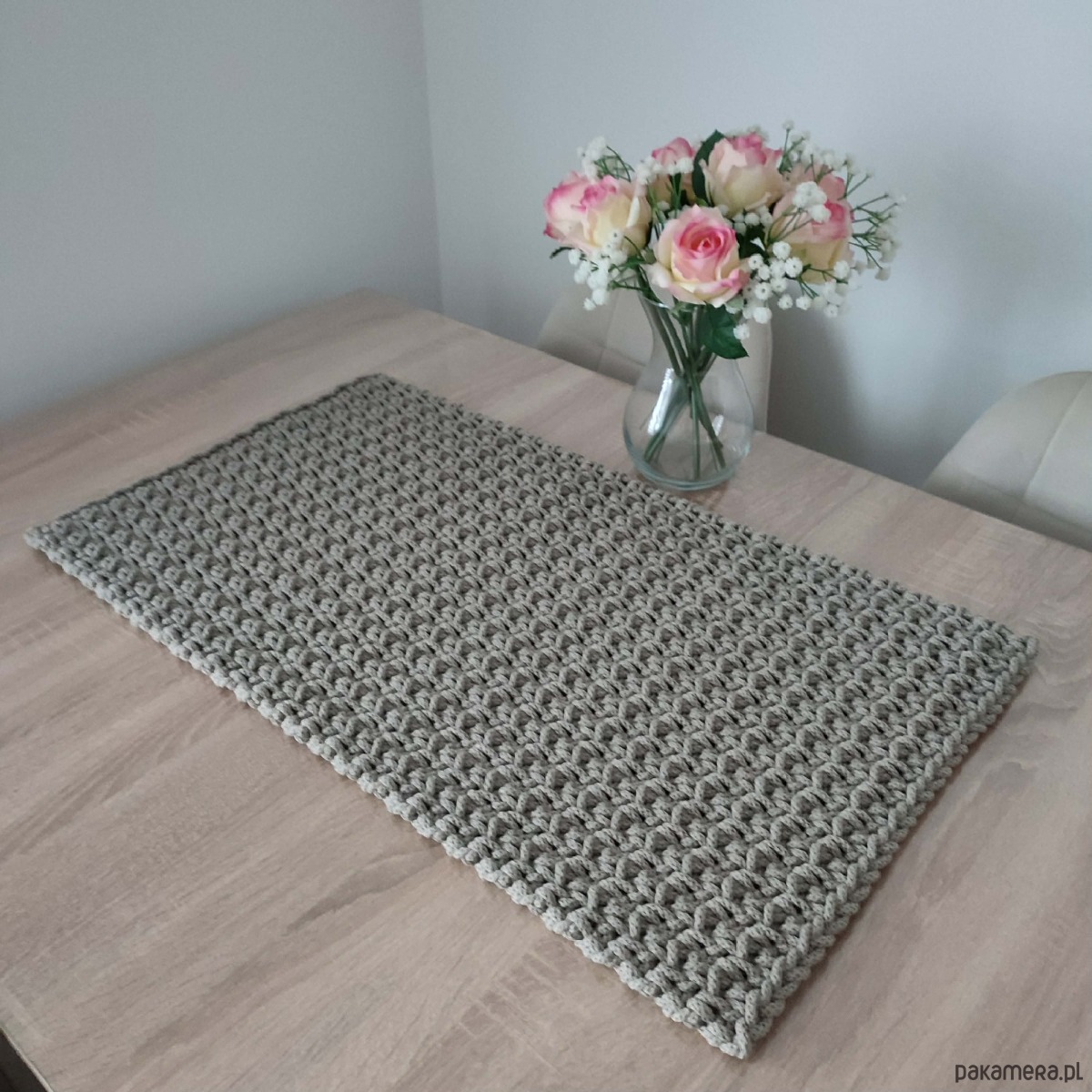 Bieżnik o wymiarach 35cmx65cm, wykonany metodą szydełkowania z polskiego sznurka bawełnianego 5mm.
