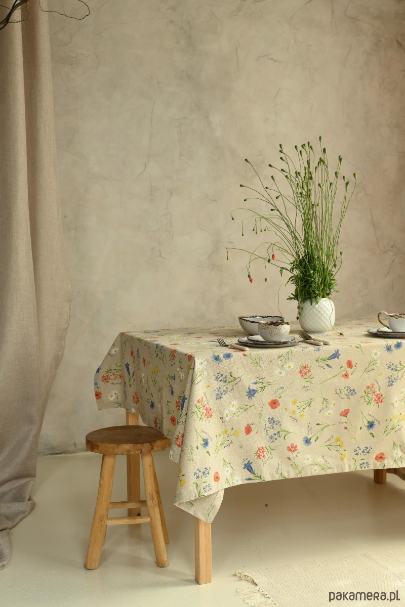 Bieżnik ŁĄKA łączy w sobie klasykę z delikatnym, domowym urokiem. Jego naturalny, bawełniany materiał w beżowym odcieniu wprowadza do wnętrza atmosferę ciepła i spokoju, stając się doskonałym tłem dla codziennych obiadów oraz świątecznych uczt.