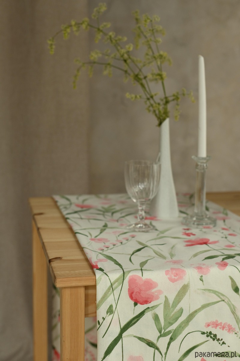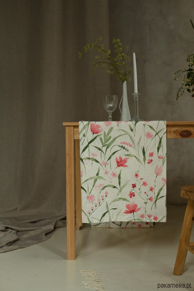 Bieżnik FREZJE łączy w sobie klasykę z delikatnym, domowym urokiem. Jego naturalny, bawełniany materiał wprowadza do wnętrza atmosferę ciepła i spokoju, stając się doskonałym tłem dla codziennych obiadów oraz świątecznych uczt.