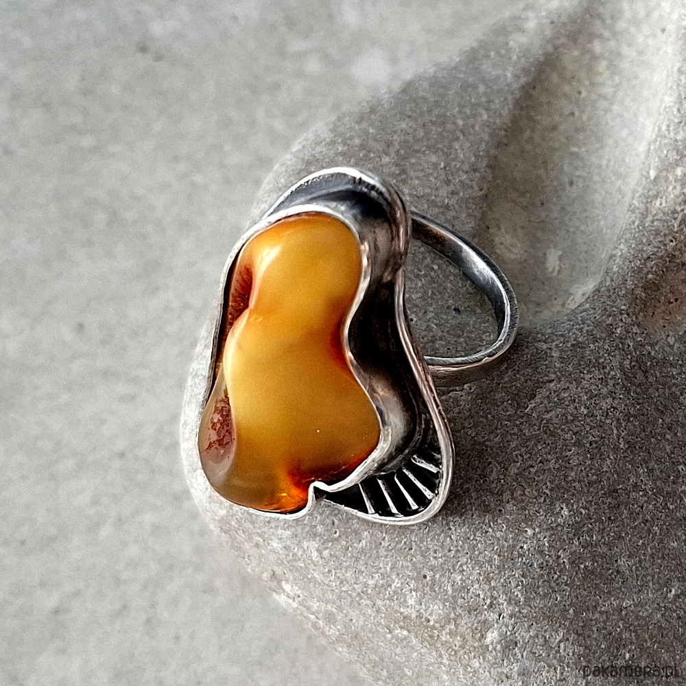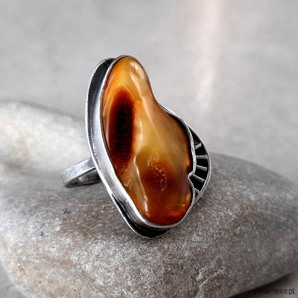 Bigtofi srebrny pierścionek z bursztynem