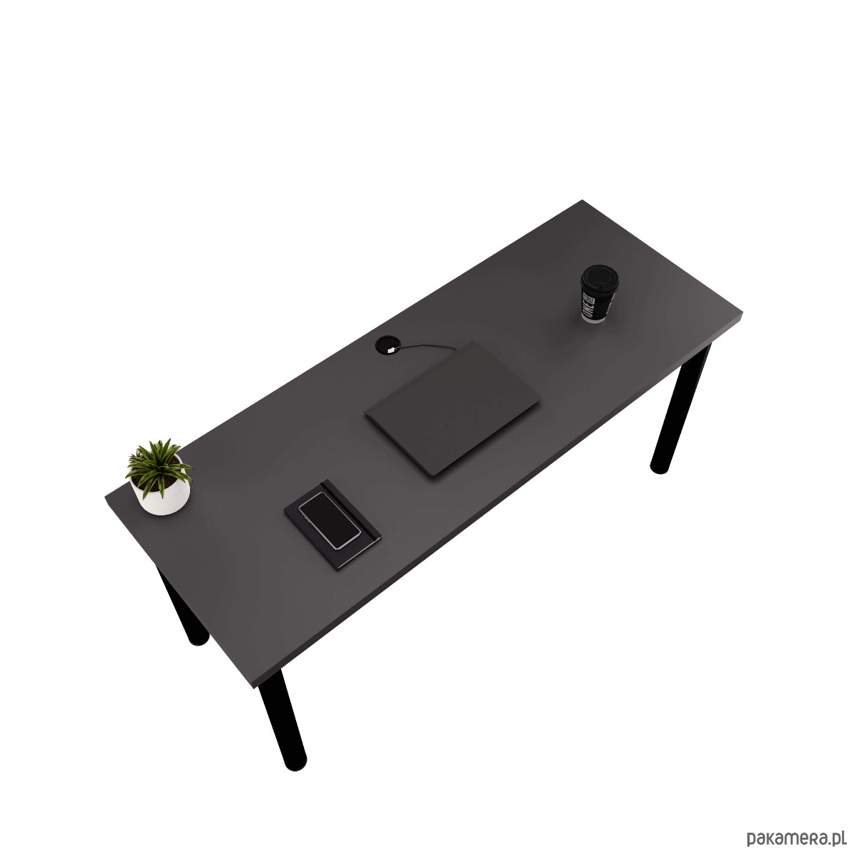 Stabilne metalowe nogi – czarna stalowa konstrukcja o średnicy 80 mm gwarantuje solidność i dodaje biurku nowoczesnego charakteru.