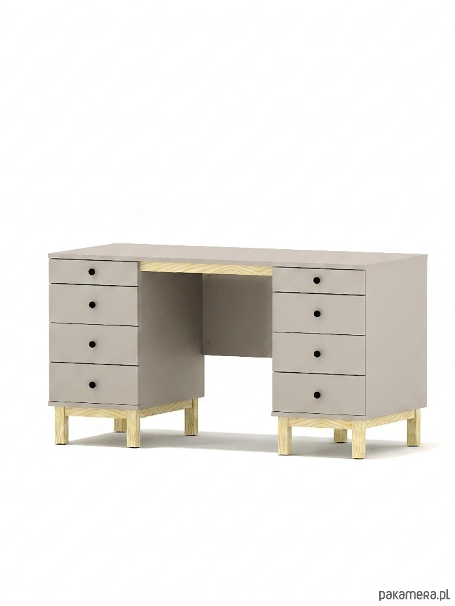 Biurko B-MODEL-1 z aż ośmioma szufladami, szarobeżowe, kaszmirowe, 140x60