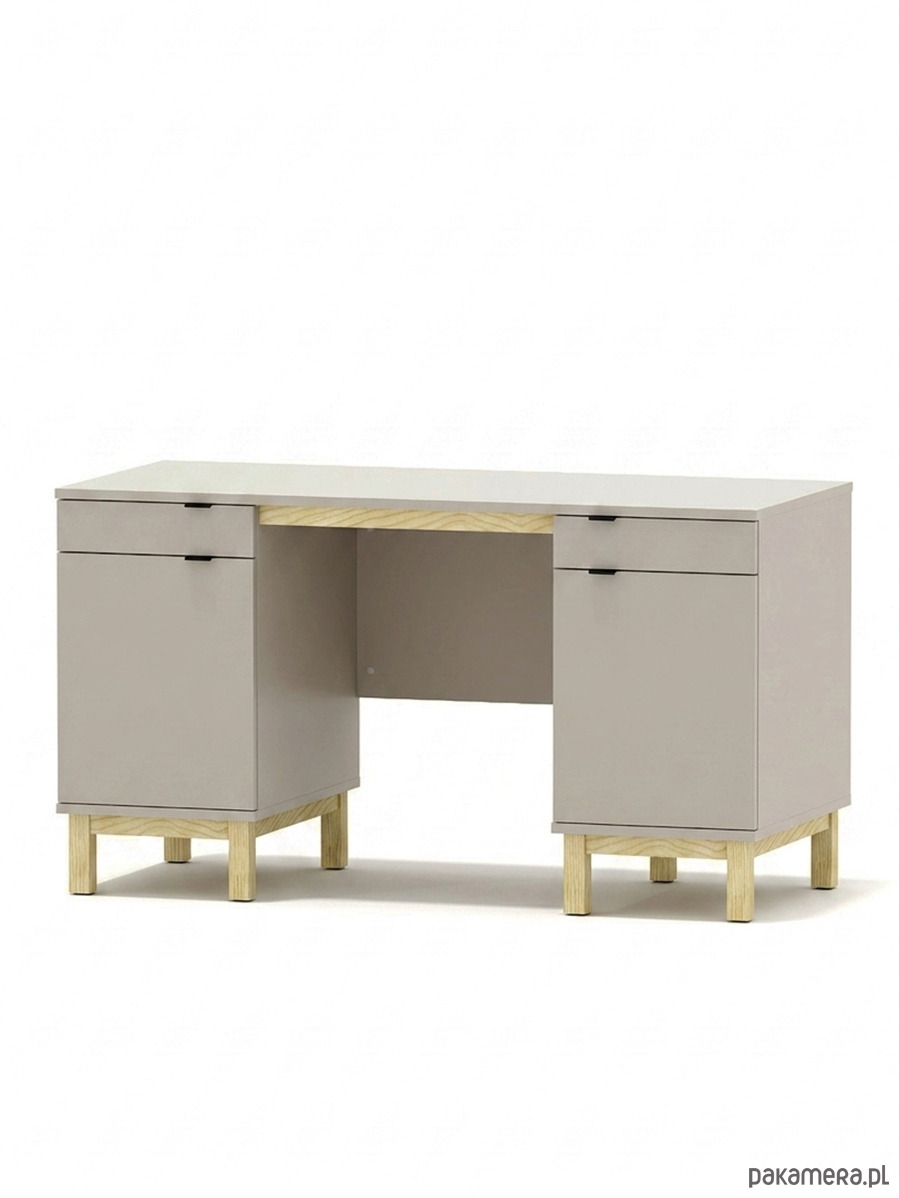 Biurko B-MODEL-1 z dwiema szufladami szafkami, szarobeżowe, kaszmirowe, 140x60