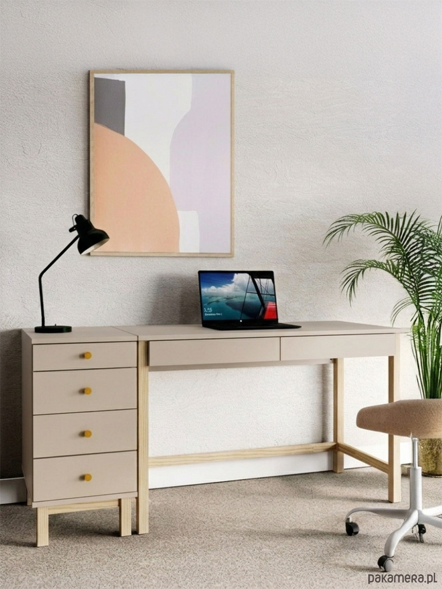 - dwie szuflady pod blatem biurka, a w dostawce aż cztery szuflady